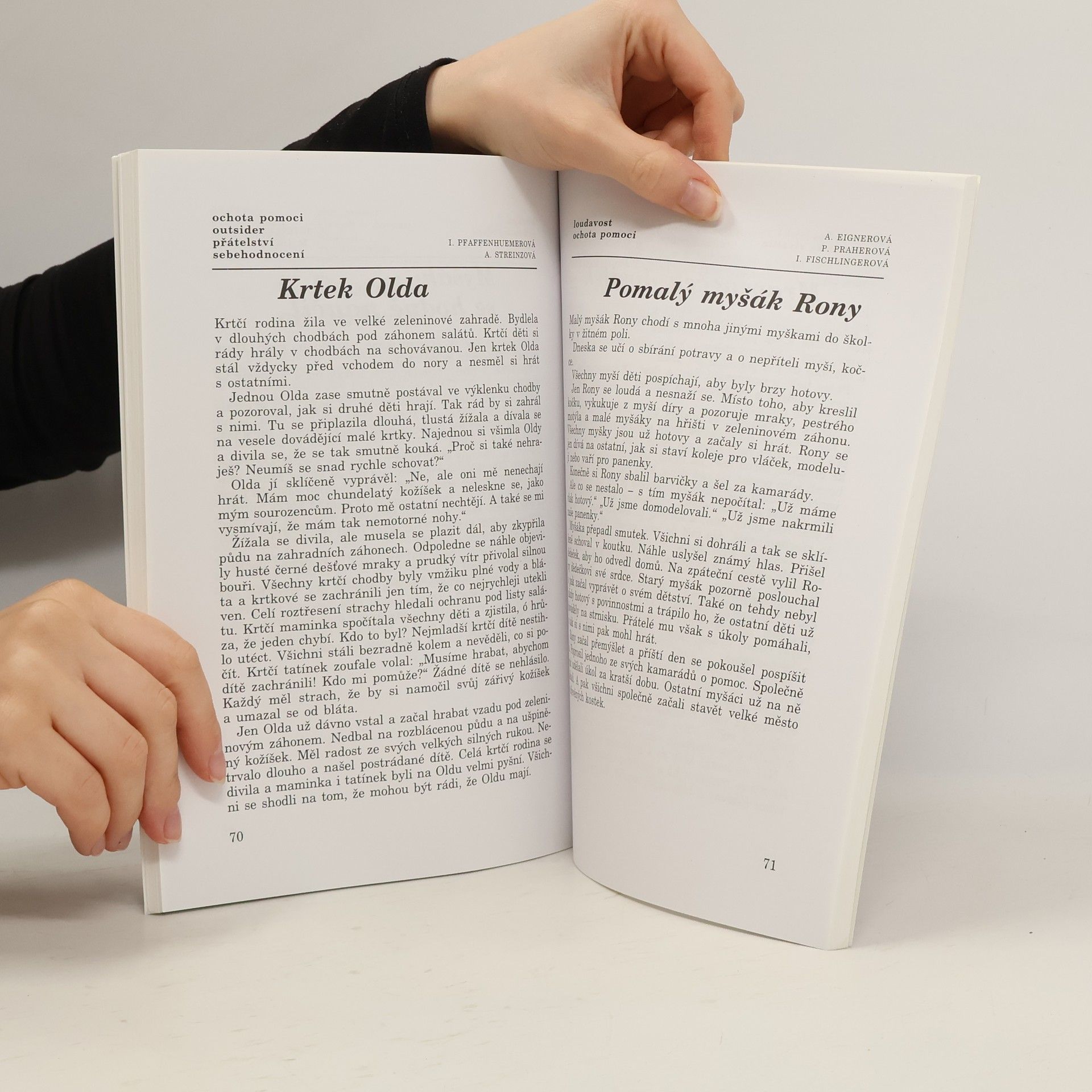 V knize najdeme více než 60 příběhů, které pohádkovou formou zpracovávají konkrétní problémy dětí (strach, nesmělost, neposlušnost, pomalost, nepřizpůsobivost ostatním, reakce na mladšího sourozence atd.) Všechny příběhy vycházejí z praxe učitelek mateřských škol i učitelů škol základních, a jsou různým situacím dětí tak blízké. Autoři v úvodu vysvětlují, jak mohou příběhy řešit různé problémy, jak se mají předčítat, doplňovat nebo měnit, aby účinně pomáhaly při výchově. Je připojen i návod, jak si vymýšlet příběhy vlastní.