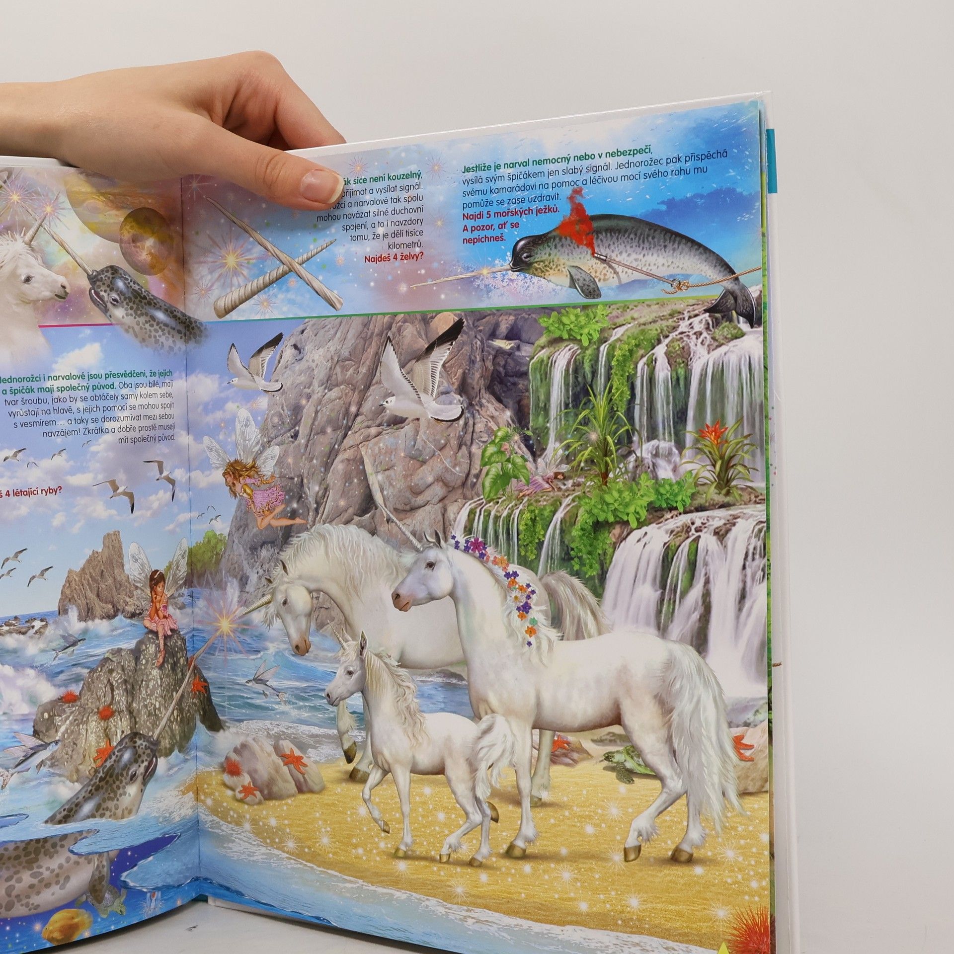 Chceš se dovědět spoustu zajímavostí o Jednorožcích? Krásná kniha plná hledání a překvapení. Děti se podívají do bájného světa Jednorožců. Poznají spoustu zajímavostí o těchto báječných zvířatech. Na obrázcích pak vyhledají předměty, které tam nepatří, ale také ty, jež se světa jednorožců týkají.