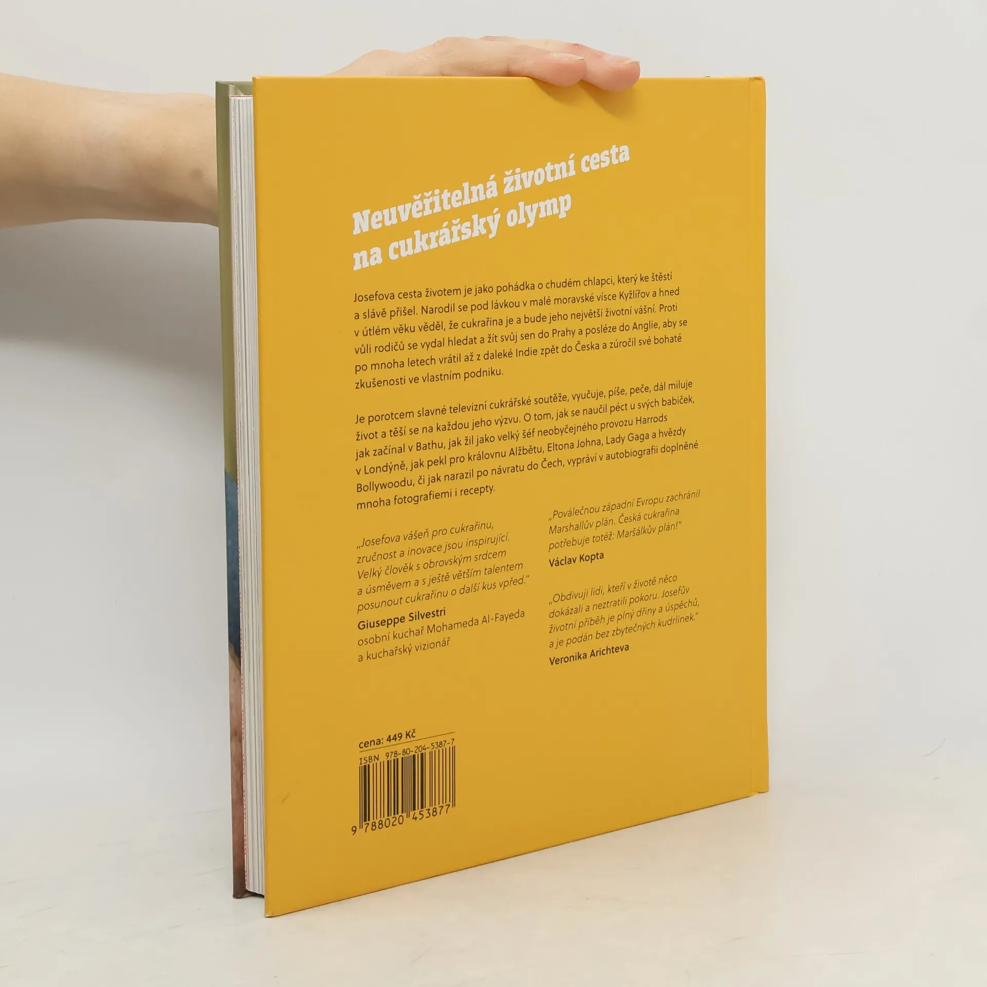 Josef Maršálek je navzdory svému mládí velice úspěšný a světově proslulý cukrář. Dlouhá léta působil ve Velké Británii, kde dosáhl významného postavení ve slavném obchodním domě Harrods a vypracoval se na jednoho z nejrenomovanějších odborníků svého oboru. Pomáhal také zakládat cukrářský podnik v Indii, cestoval a inspiraci hledal po celém světě. Před pár lety se vrátil do Čech a snaží se zúročit své bohaté zkušenosti ve vlastním podniku, je porotcem populární televizní cukrářské soutěže, vyučuje, píše, peče, dál miluje život a těší se na každou jeho výzvu. O tom, jak se naučil péct u svých babiček, jak začínal v Bathu, jak žil jako velký šéf neobyčejného provozu či jak narazil po návratu do Čech, vypráví v autobiografii doplněné mnoha fotografiemi i recepty.