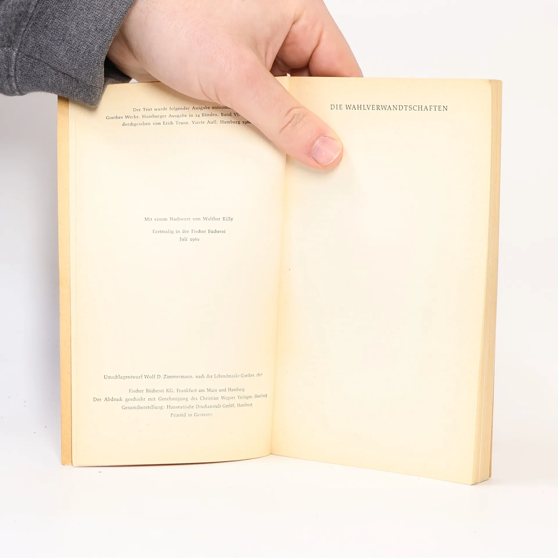 Johann Wolfgang Goethe ; Erläuterungen Von Hans-j. Weitz ; Mit Einem Essay Von Walter Benjamin, Goethes Wahlverwandtschaften. Revidierter Text Des Insel-goethe--t.p. Verso.