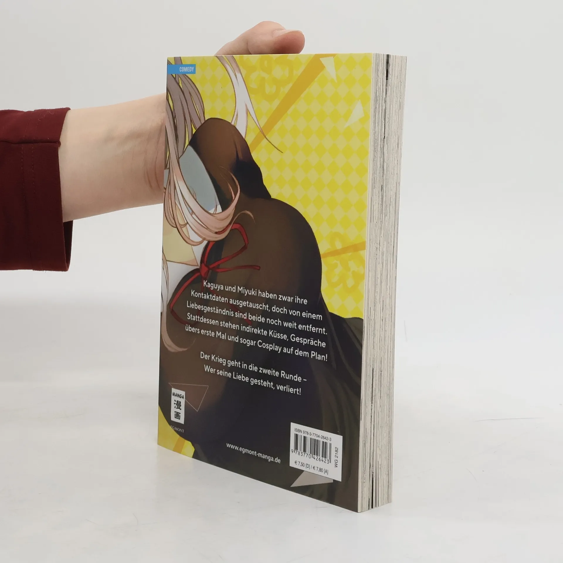 Kaguya und Miyuki haben zwar ihre Kontaktdaten ausgetauscht, doch von einem Liebesgeständnis sind beide noch weit entfernt. Stattdessen stehen indirekte Küsse, Gespräche übers erste Mal und sogar Cosplay auf dem Plan! Der Krieg geht in die zweite Runde – Wer seine Liebe gesteht, verliert!