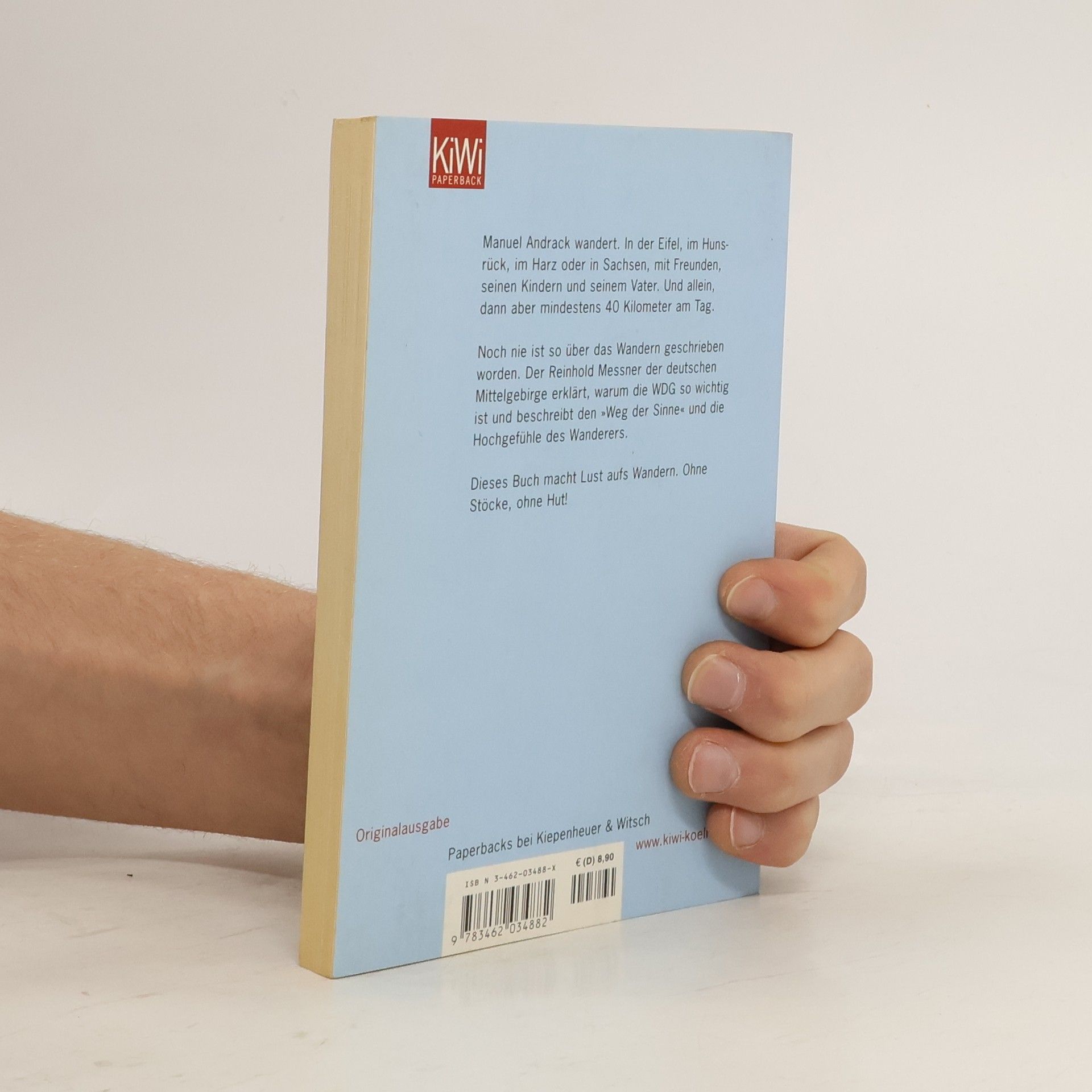 Warum wird Manuel Andrack in Böhmen beim Wandern von einem Fährmann übergesetzt und was zum Teufel hat es mit der WDG (Wanderdurchschnittsgeschwindigkeit) auf sich? Darf man Mountainbiker im Wald grüßen und sind Wanderstöcke peinlich? Kommt nach der New Economy und der Neuen Mitte nun das Neue Wandern? Wanderer brauchen Glück. Denn häufig genug ziehen sich manche der ausgewiesenen Wege an viel befahrenen Bundesstraßen entlang. Hat man dann endlich den rettenden Forstweg erreicht, wird man von riesigen Holztransportern überholt, so dass nur noch der Sprung in den nächsten Graben Schlimmeres verhindert. Was aber immer noch besser ist, als Auge in Auge mit einem aggressiven Riesenhund ohne Herrchen mitten im Wald zu stehen. Manuel Andrack kennt das alles. Seit fast zehn Jahren wandert er in der Eifel, dem Harz oder durch die Sächsische und Böhmische Schweiz. Von seinen persönlichen Lieblingswanderwegen erzählt er in 'Du musst wandern'. Dabei wandert er mit Freunden, seinen Kindern und seinen Eltern, aber am liebsten wandert er allein und lange. Oft ist Manuel Andrack den ganzen Tag unterwegs, geht bis zu 40 Kilometer. Er wandert nach dem Abstieg des 1. FC Köln (mit jedem Schritt wurde der Schmerz weniger) und findet Trost beim großen Wanderer Johann Wolfgang von Goethe: 'Was ich nicht erlernt habe, das habe ich erwandert.'