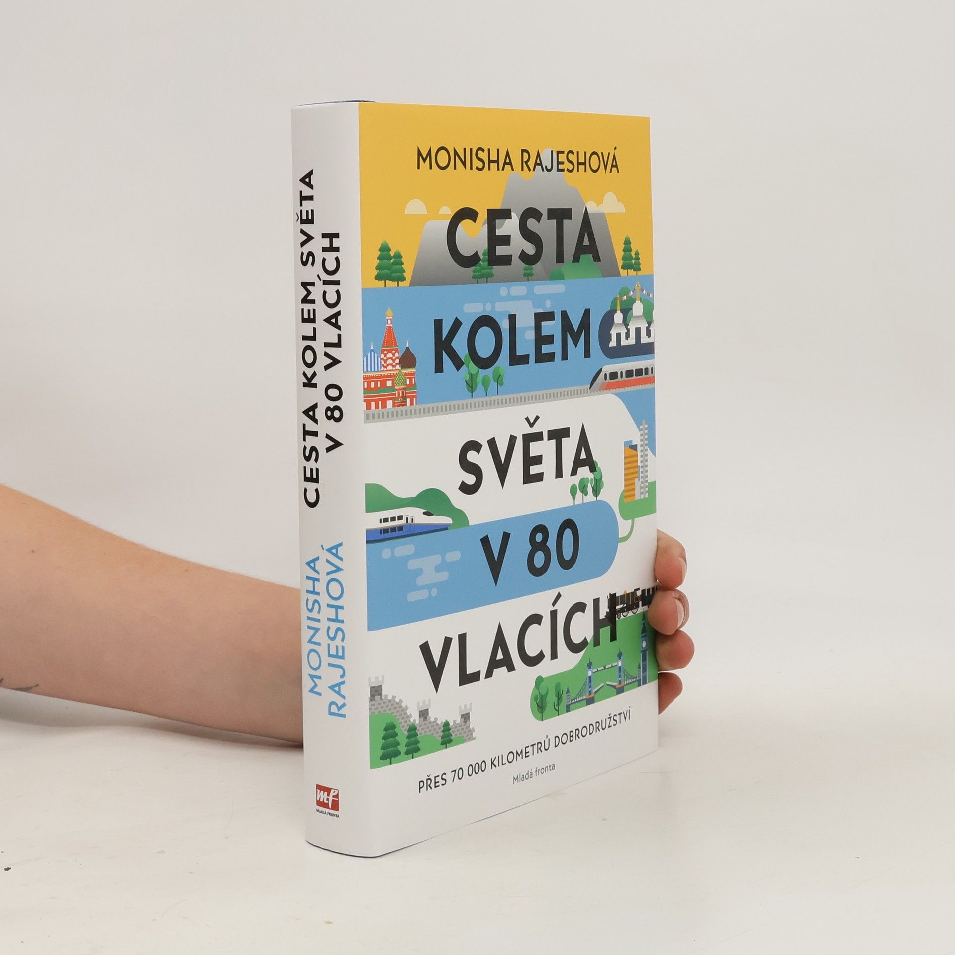 Přes 70 000 kilometrů dobrodružství na kolejích. Když Monisha oznámila svůj záměr absolvovat cestu kolem světa v 80 vlacích, všichni si jen klepali na čelo. Přesto netrvalo dlouho a ona skutečně hodila batoh na záda, vzala za ruku svého snoubence Jema a vydala se na pečlivě naplánovanou pouť po kolejích čítající více než 70 000 kilometrů z jednoho konce světa na druhý a zase zpátky. Během sedmi měsíců jim za okénkem ubíhaly tak rozdílné kraje jako Mongolsko, Kanada, Čína, Japonsko, Kazachstán, Rusko, Amerika, a dokonce se odvážili i do Severní Koreje. Projeli se po Transsibiřské magistrále, luxusním Orient Expresem, japonskými rychlovlaky, ale také ušmudlanými lokálkami. Potkali spoustu zábavných, svérázných a milých pasažérů, s nimiž si směňovali jídlo i životní příběhy. Monisha Rajeshová, novinářka působící mimo jiné v denících The Guardian či The New York Times, o svém putování vypráví tak, že si tu každý najde svoje. Bizarní i komické zážitky z vlaků střídá poetický popis krajiny nebo hekticky pulsujících velkoměst, nechybí společensko-politický kontext, historické vsuvky a vtipné komentáře. Po přečtení dostane každý chuť sbalit si svých pět švestek a nasednout do prvního dálkového expresu.