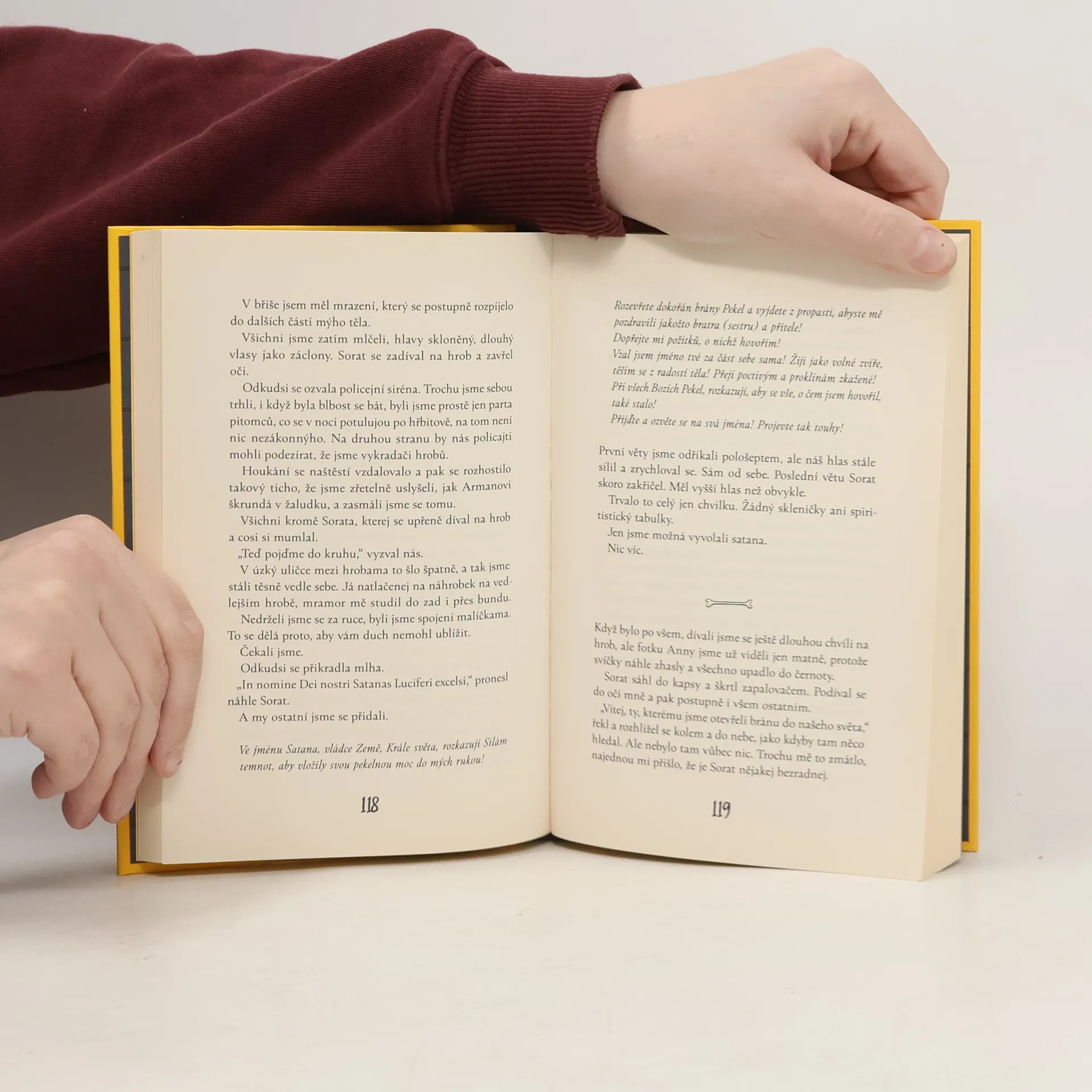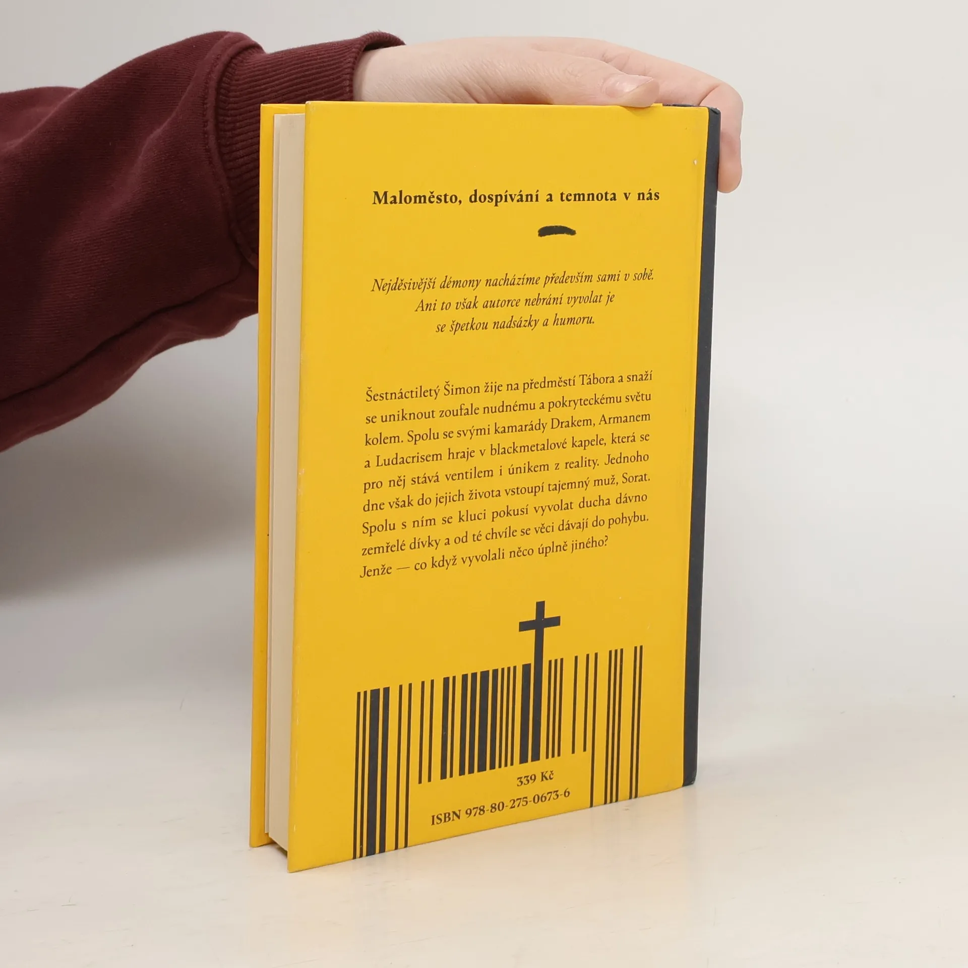 Maloměsto, dospívání a temnota v nás. Šestnáctiletý Šimon žije na předměstí Tábora a snaží se uniknout zoufale nudnému a pokryteckému světu kolem. Spolu se svými kamarády Drakem, Armanem a Ludacrisem hraje v blackmetalové kapele, která se pro něj stává ventilem i únikem z reality. Jednoho dne však do jejich života vstoupí tajemný muž, Sorat. Spolu s ním se kluci pokusí vyvolat ducha dávno zemřelé dívky a od té chvíle se věci dávají do pohybu. Jenže — co když vyvolali něco úplně jiného? Nejděsivější démony nacházíme především sami v sobě. Ani to však autorce nebrání vyvolat je se špetkou nadsázky a humoru.