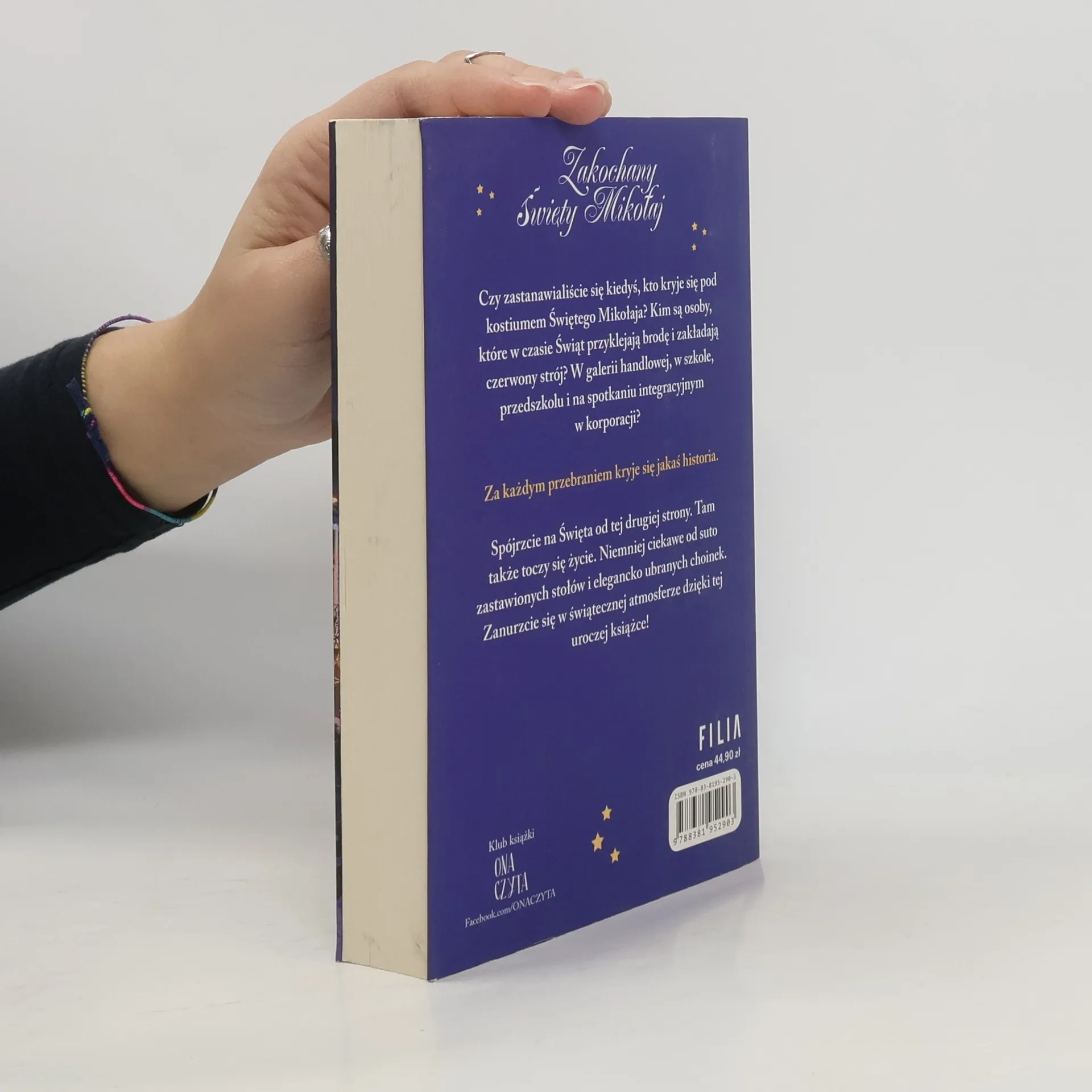 Siedem pięknych historii o miłości! Czy zastanawialiście się kiedyś, kto kryje się pod kostiumem Świętego Mikołaja? Kim są osoby, które w czasie Świąt przyklejają brodę i zakładają czerwony strój? W galerii handlowej, w szkole, przedszkolu i na spotkaniu integracyjnym w korporacji? Za każdym przebraniem kryje się jakaś historia. Spójrzcie na Święta od tej drugiej strony. Tam także toczy się życie. Niemniej ciekawe od suto zastawionych stołów i elegancko ubranych choinek. Zanurzcie się w świątecznej atmosferze dzięki tej uroczej książce!