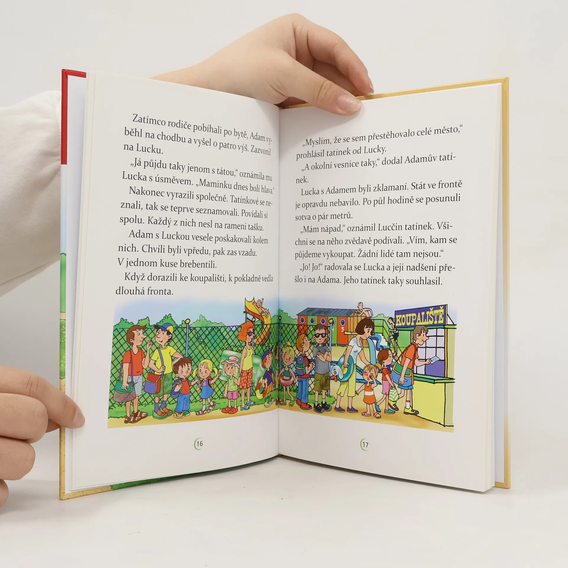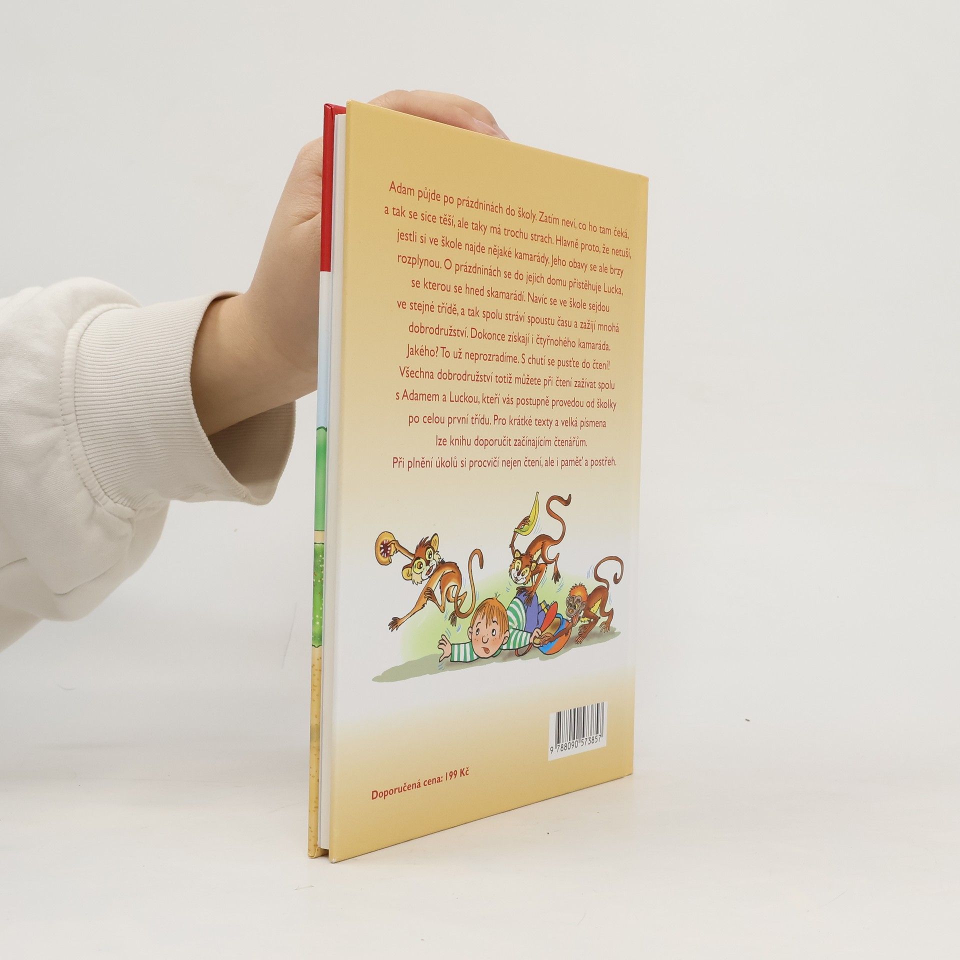 Adam půjde po prázdninách do školy. Zatím neví, co ho tam čeká, a tak se sice těší, ale taky má trochu strach. Hlavně proto, že netuší, jestli si ve škole najde nějaké kamarády. Jeho obavy se ale brzy rozplynou. O prázdninách se do jejich domu přistěhuje Lucka, se kterou se hned skamarádí. Navíc se ve škole sejdou ve stejné třídě, a tak spolu stráví spoustu času a zažijí mnohá dobrodružství. Dokonce získají i čtyřnohého kamaráda. Jakého? To už neprozradíme. S chutí se pusťte do čtení! Všechna dobrodružství totiž můžete při čtení zažívat spolu s Adamem a Luckou, kteří vás postupně provedou od školky po celou první třídu. Pro krátké texty a velká písmena lze knihu doporučit začínajícím čtenářům. Při plnění úkolů si procvičí nejen čtení, ale i paměť a postřeh