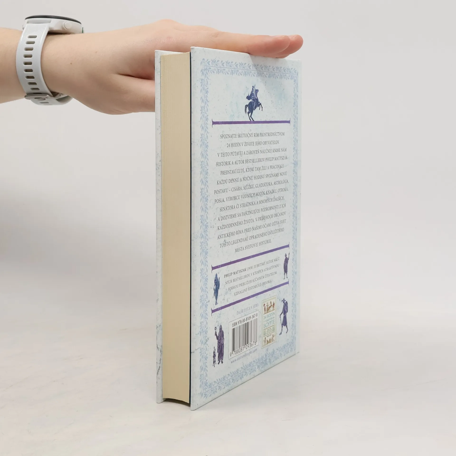 Jeden deň v živote ľudí, ktorí tam žili. Spoznajte skutočný Rím prostredníctvom 24 hodín v živote jeho obyvateľov. V tejto pútavej a zároveň náučnej knihe nám historik a autor bestsellerov Philip Matyszak predstaví ľudí, ktorí tam žili a pracovali. Každú dennú a nočnú hodinu spoznáme novú postavu – cisára, slúžku, gladiátora, astrológa, posla, výrobcu vodných hodín, kňažku, otroka, senátora či strážnika a mnohých ďalších, a dozvieme sa fascinujúce podrobnosti z ich každodenného života. V príbehoch občanov antického Ríma pred našimi očami ožíva svet tohto legendami opradeného dôležitého mesta svetovej histórie.