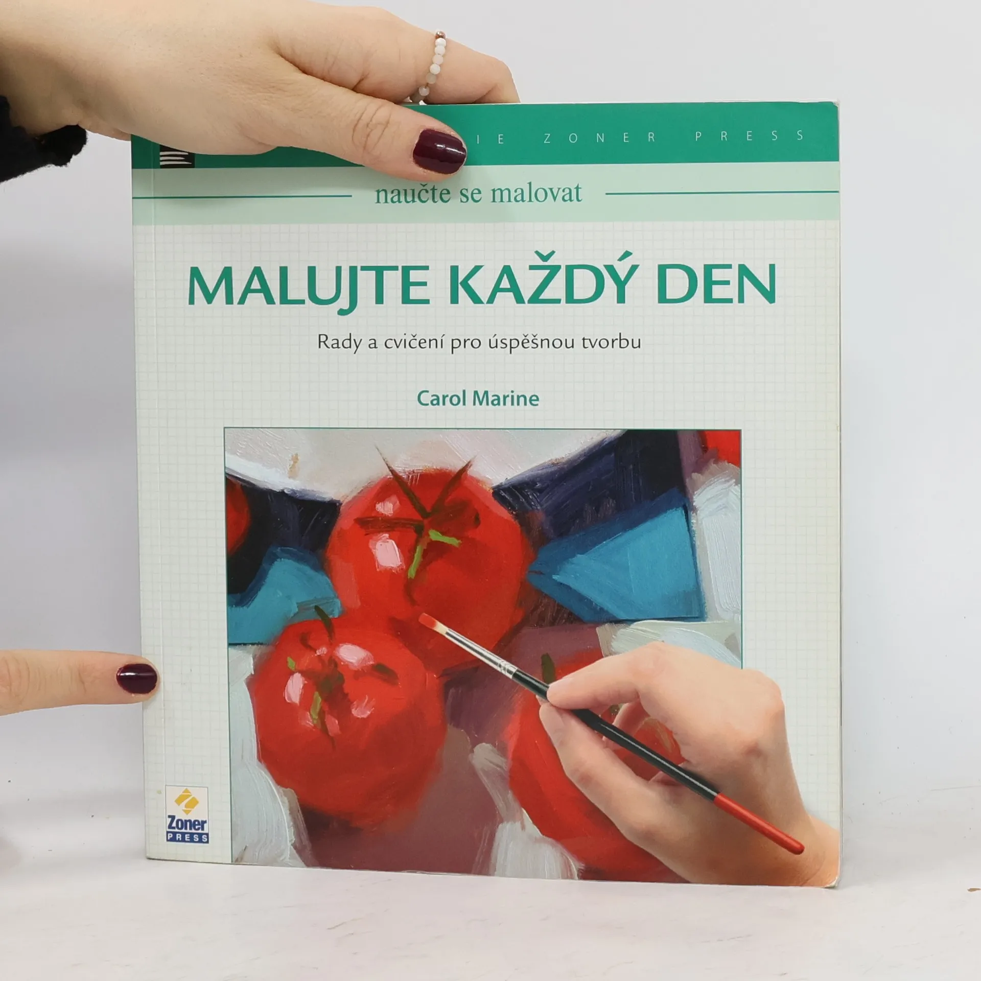 Rady a cvičení pro úspěšnou tvorbu (Naučte se malovat) V jedné z mých oblíbených knih říká čínský filozof: Někdo vyletí k nebesům jako drak a někdo se jako žížala prodírá prachem cest. Je určitě dobré mít velké a smělé cíle, ale každodenní život se skládá z uskutečňování maličkostí. Baví vás malování nebo kreslení? Ale současně se trápíte tím, že se vám nedaří dokončovat velké projekty, zdá se vám, že se nehýbete z místa a přestává vás malování bavit? Zkuste změnit svůj přístup. Autorka publikace Malujte každý den, Carol Marine, přesně ví, jak se cítíte. Sama si prošla tvůrčí krizí, kterou jí pomohlo vyřešit každodenní malování menších obrázků. Vyzkoušejte i vy tuto metodu, při které se zaměříte na malování obrázků, které zvládnete dokončit během jednoho dne. Díky této publikaci zvládnete techniky malby, naučíte se malovat uvolněně a váš koníček vám začne přinášet zase radost. A navíc vám autorka ukáže, jak je jednoduché a snadné představit vaše obrazy lidem a začít je i prodávat na internetu. Kniha je vedle praktických postupů a návodů, které vám pomohou zdokonalit se v malování, doplněna množstvím inspirativních ukázek tvorby autorky i řady dalších umělců. Naučíte se: Zvládnout kompozici a valér Získat sebevědomí při práci s jakýmkoli médiem Vhodně si vybírat náměty Malovat uvolněně Fotografovat, nahrávat a prodávat vaše díla na internetu Spojit se s neustále rostoucím hnutím „každodenních“ malířů z celého světa