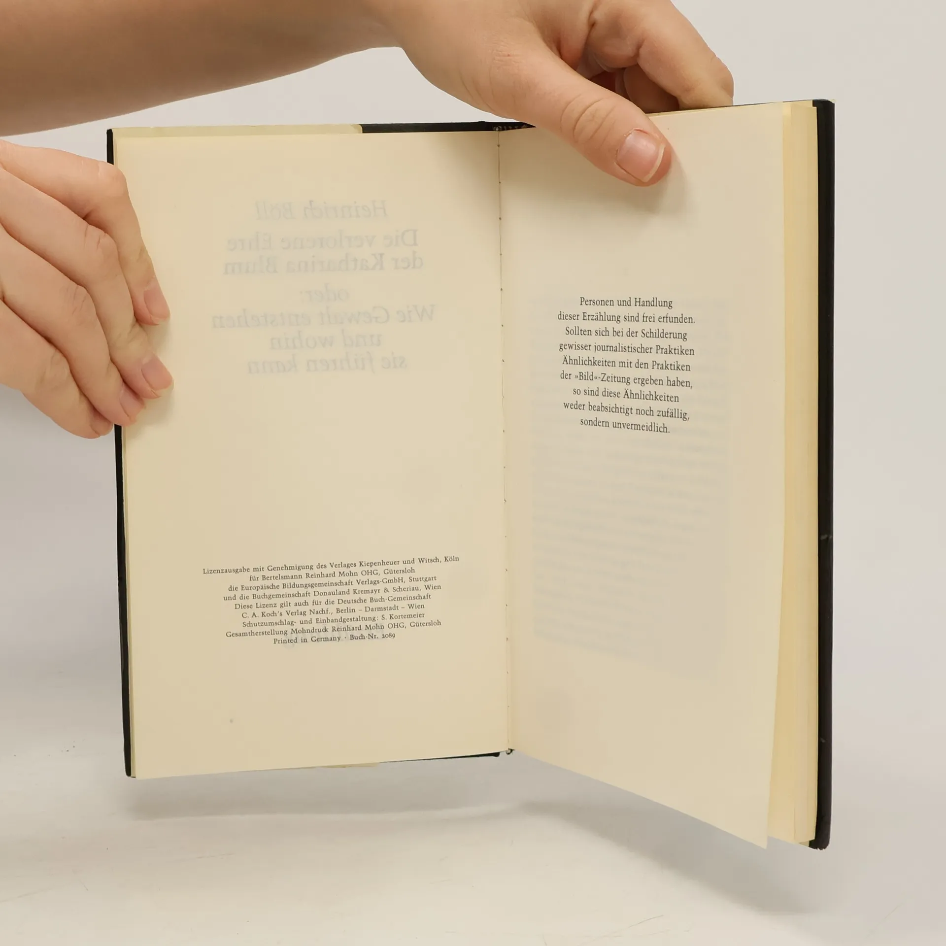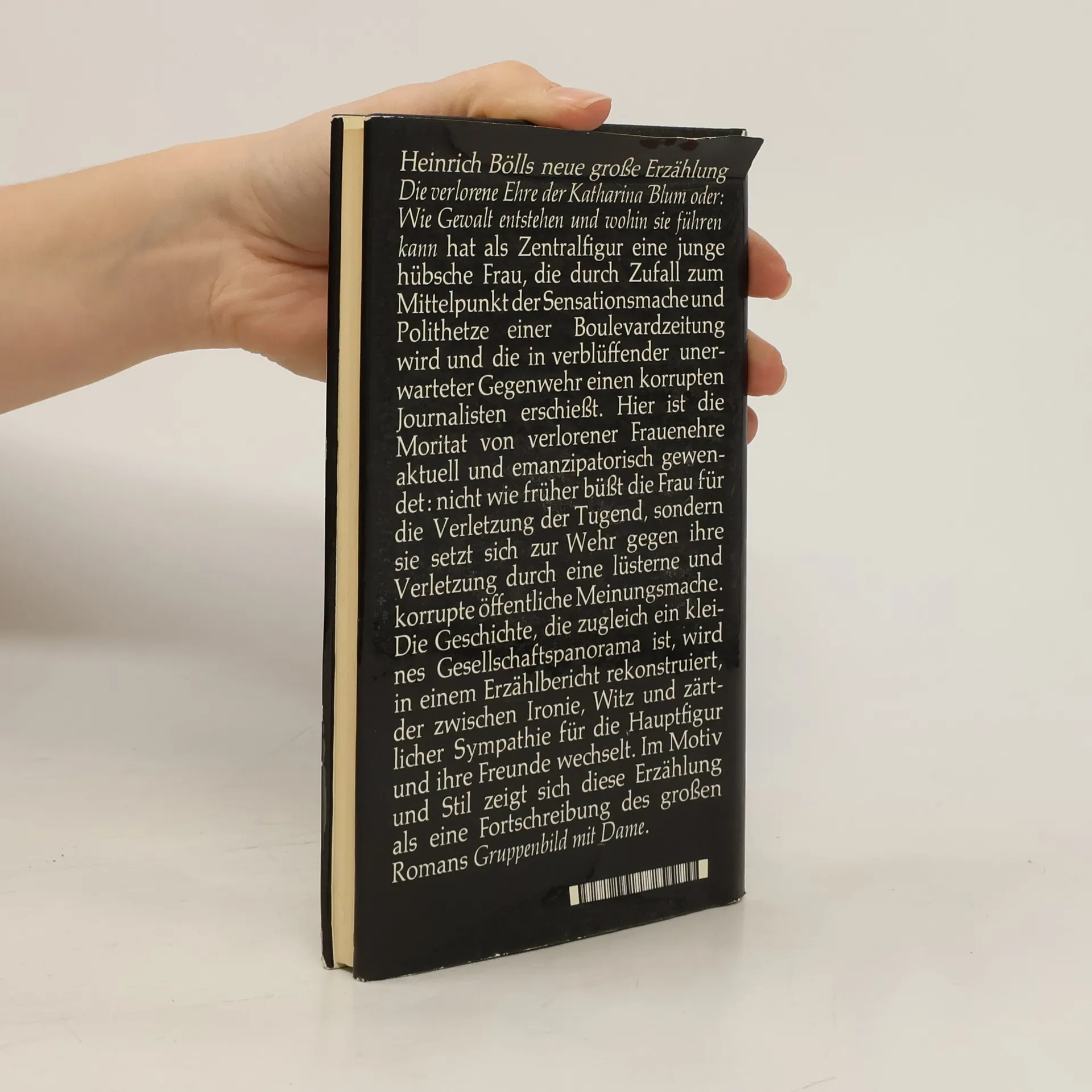 »Ähnlichkeiten mit den Praktiken der ›Bild‹-Zeitung [...] sind weder beabsichtigt noch zufällig, sondern unvermeidlich.« Aus dem Vorwort Bölls Katharina Blum ist eine junge hübsche Haushälterin, die sich eine kleine Eigentumswohnung und einen Volkswagen leisten kann. Sie hat ein heiter-bescheidenes Wesen und wird, weil sie Zudringlichkeiten der Männer verabscheut, in ihrer Umgebung die »Nonne« genannt. Diese Frau verliebt sich spontan in einen jungen Mann, einen von der Polizei gesuchten radikalen Rechtsbrecher. Sie verhilft ihm zur Flucht und gerät in den Mittelpunkt der Sensationsmache einer großen Boulevardzeitung. Die Situation eskaliert, als der Journalist Werner Tötges in ihre Wohnung kommt ...