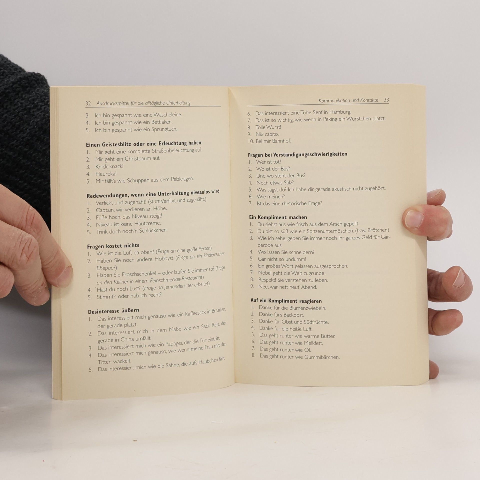 Aber hallo! Geht’s noch? Ein Strauß fröhlicher Wendungen und Redensarten aus dem gemeinen Wortschatz der Deutschen in einem Buch – übersichtlich gegliedert und säuberlich geordnet. Da beißt die Maus keinen Faden ab: Dieser moderne Sprach- und Sprücheführer ist ein unentbehrlicher Begleiter auf dem Trampelpfad durch die wunderbare Welt der Phrasen, Kalauer und Floskeln – von der Wiege bis zur Bahre.