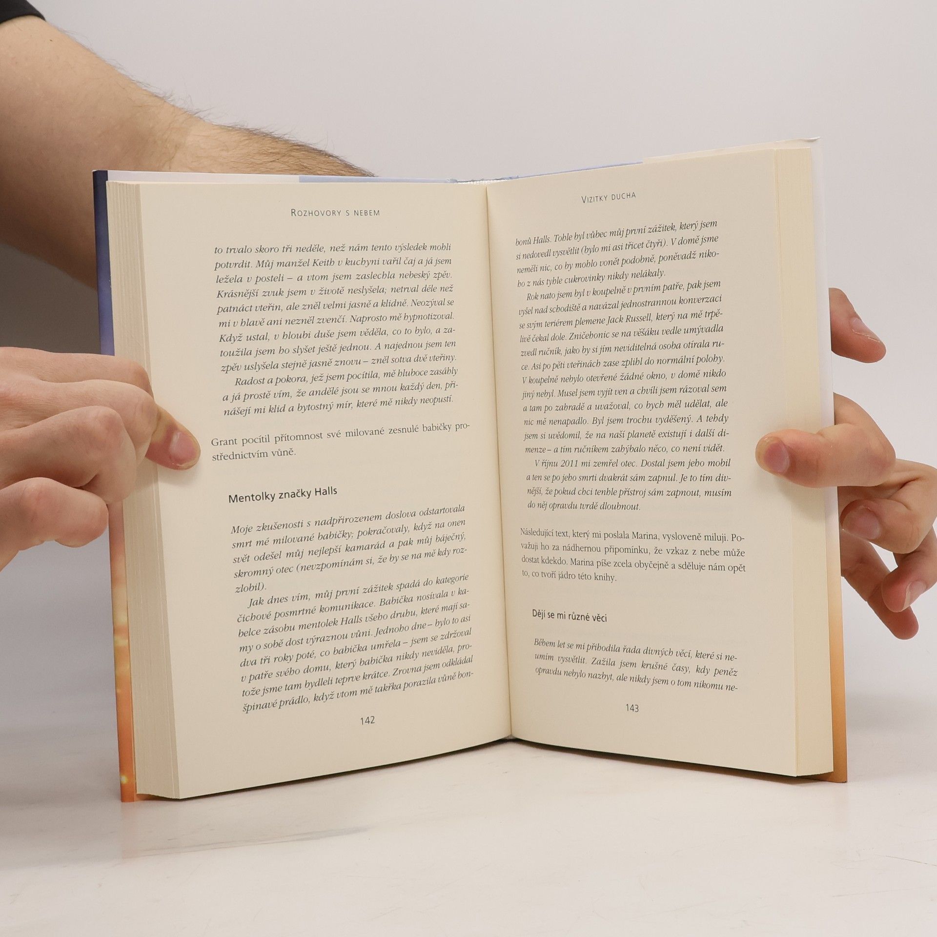 Na základě osobních zkušeností i zážitků mnoha lidí sestavila uznávaná odbornice na paranormální jevy sbírku uklidňujících i znepokojivých příběhů o kontaktech s neviditelným světem, který nás obklopuje, a také s posmrtným životem. Hlavní téma této knihy zní, že nebesa nám nabízejí mnohá znamení, chrání nás a díky nim můžeme také navázat spojení s těmi, které jsme milovali a ztratili. Autorka si rychle našla cestu k srdcím českých čtenářů, jak o tom svědčí velký úspěch jejích předchozích knížek Spatříš svoje anděly a Život smrtí nekončí.