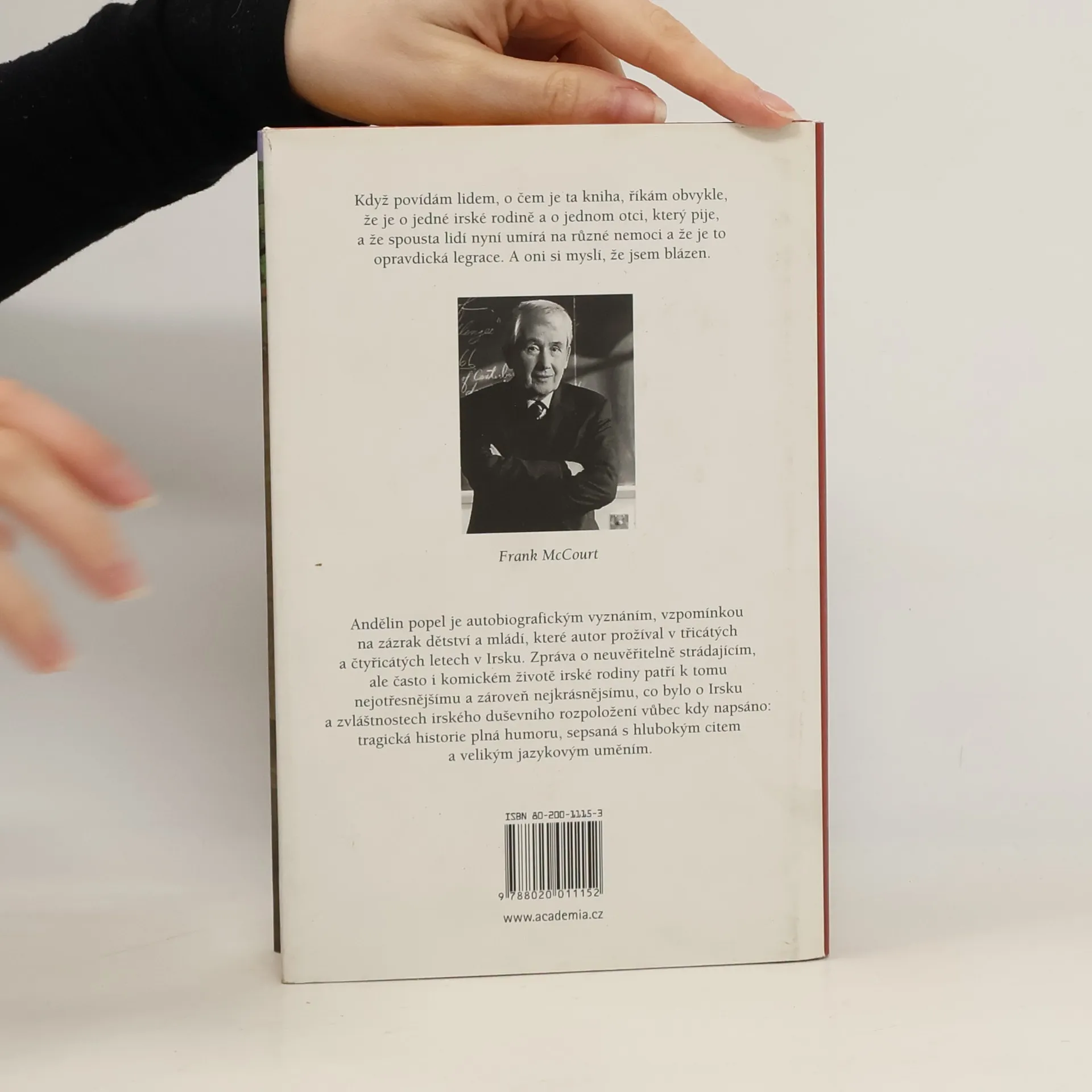Autobiografické vyznání, vzpomínky stárnoucího muže na dětství a mládí, které prožíval v třicátých a čtyřicátých letech v Irsku. Zpráva o neuvěřitelně strádajícím, ale sounáležitém a často komickém životě irské rodiny vypovídá nejen o životních zvratech a stereotypech, ale také o dobové atmosféře této éry dvacátého století. Tragikomické autobiografické vyznání je působivým dokladem ryzího irského naturelu, sepsané s hlubokým citem a velikým stylistickým uměním.... celý text