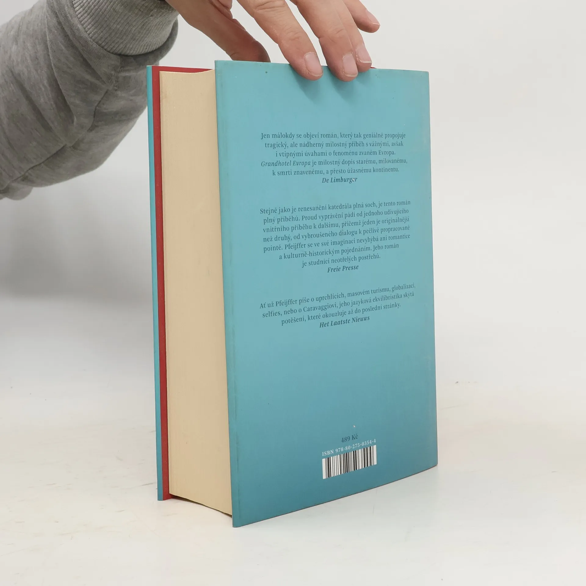 Román o starém kontinentu, který je tak nabitý minulostí, že už v něm nezbývá místo pro budoucnost Známý spisovatel přijíždí do Grandhotelu Evropa, aby se zde psaním románu vypořádal se ztroskotáním svého osudového vztahu. Kdysi přepychový hotel pomalu chátrá, stejně jako v autorových očích upadá i mocný a skvostný stejnojmenný kontinent, který se v posledních letech stal skanzenem a lunaparkem pro turisty. Zatímco hrdinové románu pátrají po posledním Caravaggiově obrazu a cestují do nejrůznějších koutů světa, Grandhotel Evropa zaplavují turisté z Číny. Ilja Pfeijffer se v košatém vyprávění plném historických a literárních odkazů zamýšlí nad migrací, sexem i uměním a ilustruje, jak se Evropa i zbytek světa mění pod náporem globalizace a masového turismu.