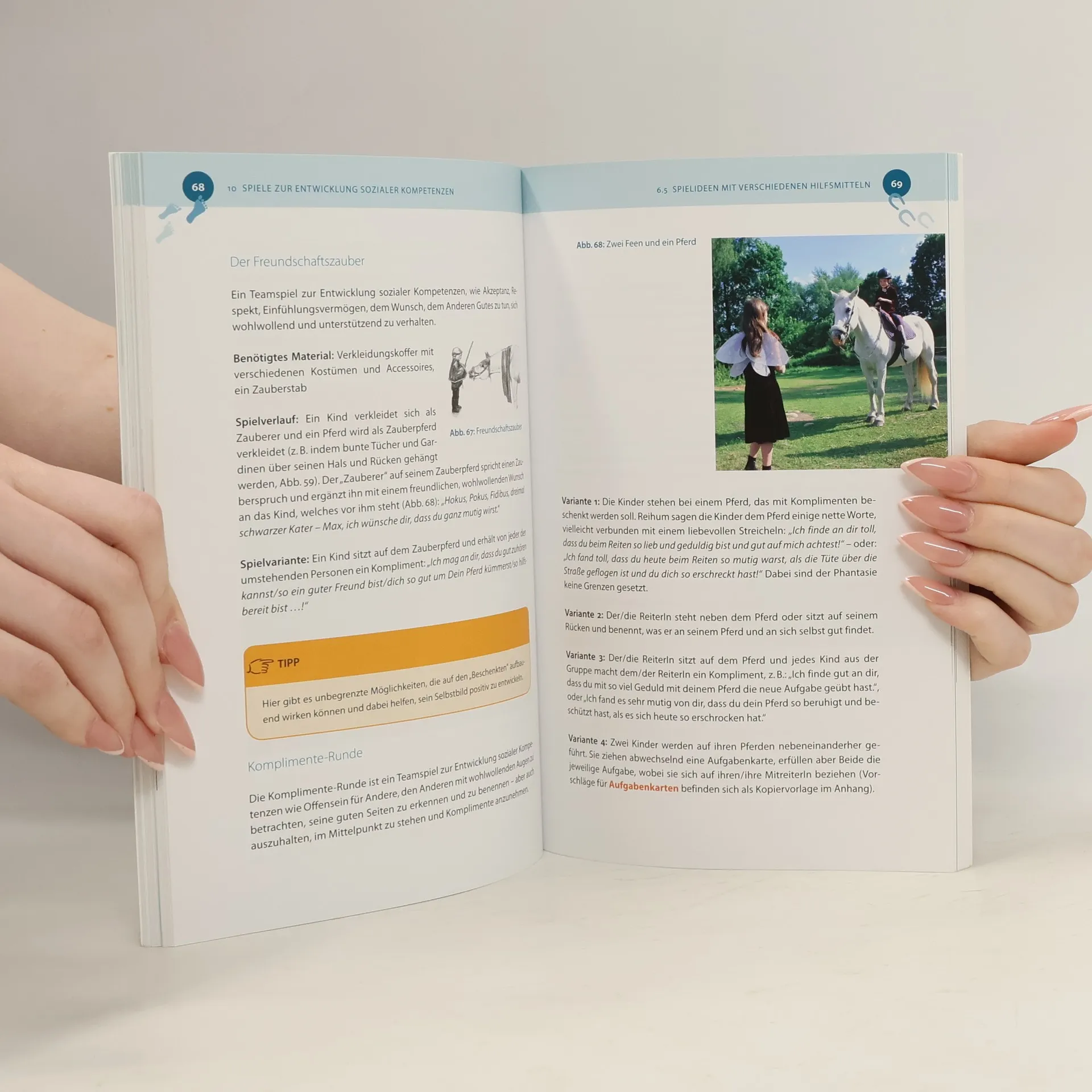 Einmal als Fee auf dem Zauberpferd durch die Wälder reiten oder sich als Ritter auf seinem stolzen Ross den Feinden Mit diesen zahlreichen Reit-, Voltigier- und Führübungen und -spielen mit detaillierten Beschreibungen werden manche Kinderträume wahr. Die Übungen und Spiele sind für Kinder verschiedener Altersstufen im Freizeitbereich, aber auch in der Heilpädagogik geeignet. Dabei wird auch besonders auf den respektvollen Umgang mit den Pferden geachtet. Liebevoll gestaltete Urkunden und Pässe zum Herunterladen erinnern die Kinder auch zu Hause noch an die schönen Erlebnisse mit den Pferden.Mit dieser Spiele- und Übungssammlung wird den Kindern, ihren BetreuerInnen und auch den Pferden bestimmt nicht langweilig!
