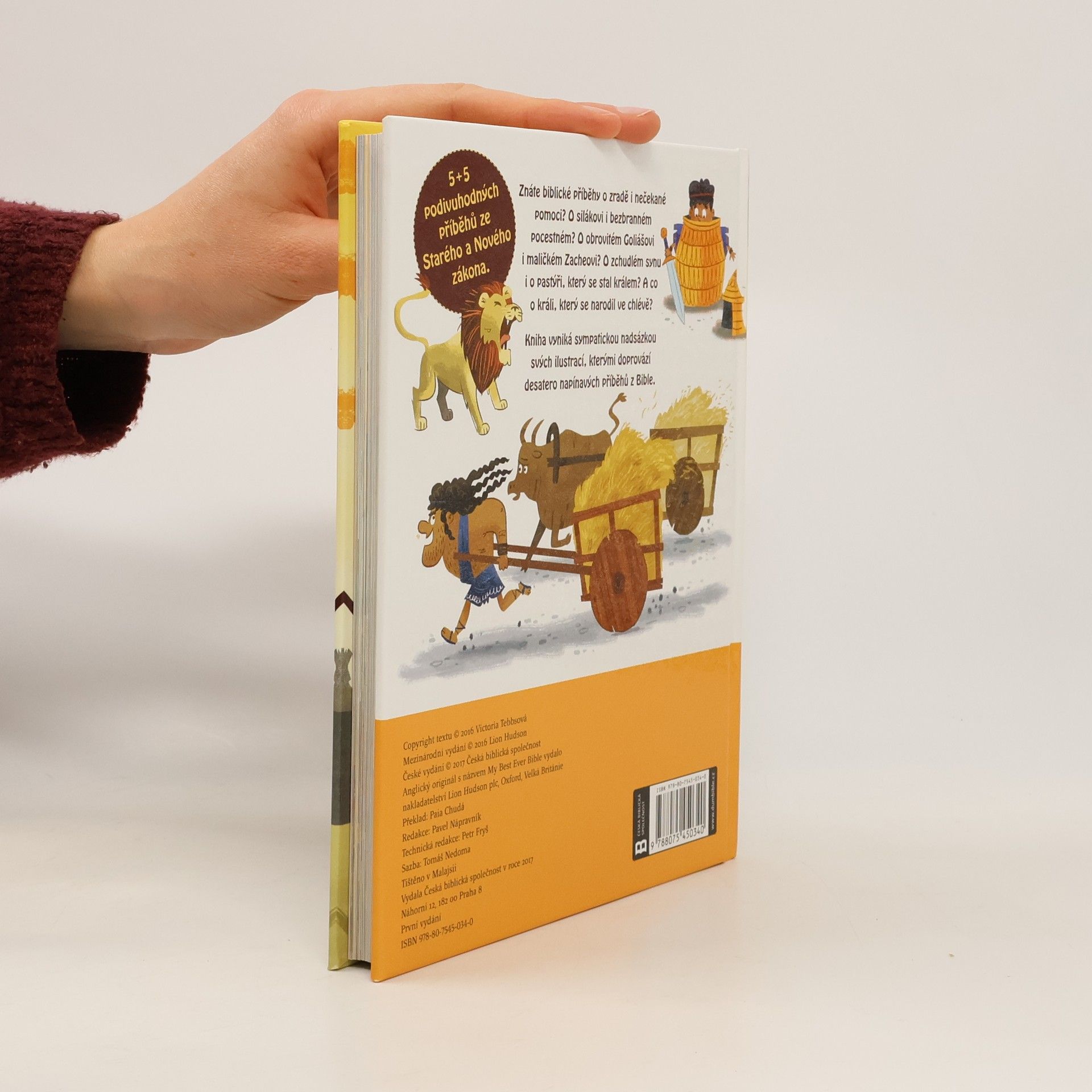 5 + 5 podivuhodných příběhů ze Starého a Nového zákona. Znáte biblické příběhy o zradě i nečekané pomoci? O silákovi či bezbranném pocestném? O obrovitém Goliášovi nebo o maličkém Zacheovi? O zchudlém synu nebo o pastýři, který se stal králem? A co o králi, který se narodil ve chlévě? Desatero napínavých příběhů z Bible doprovázejí sympatické ilustrace Lee Cosgrovea. Kniha je vhodná pro předškoláky a pro první čtenáře.