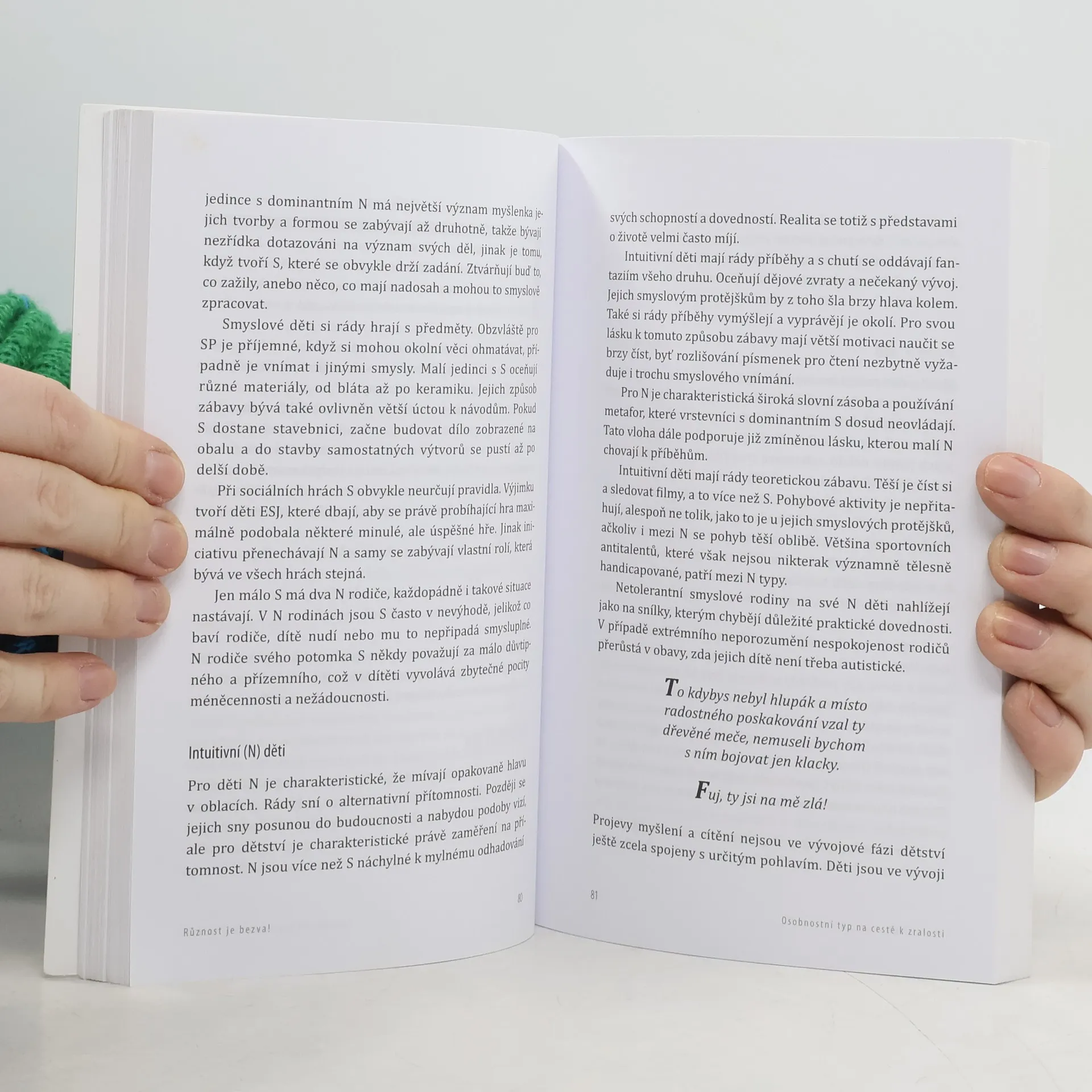 Právě v rukou držíte text, který se hemží čtyřpísmennými zkratkami jako ENFJ, INTP či ISTJ. Každá z nich představuje jeden z 16 typů osobností rozlišovaných typologií MBTI. I přes nepopiratelnou jedinečnost každého tvora mají nositelé jednotlivých typů velmi podobný přístup k práci, způsob komunikace, životní hodnoty i proces dozrávání. Kniha Různost je bezva provádí čtenáře jednotlivými oblastmi lidského života, ve kterých jsou mezi nositeli různých typů zvlášť velké rozdíly – mezilidskými vztahy, komunikací, prací a vývojem osobnosti v průběhu života. Průvodci na této cestě za lepším porozuměním sobě i svým bližním je jak pečlivě probíraná teorie zahrnující dynamiku osobnostního typu a problematiku temperamentů, tak četné příklady projevů osobnostního typu z praxe. A ač dílo nabízí možnost hlubšího pochopení celé typologie, je psáno tak, aby ho mohl číst i člověk, který se s MBTI dosud nikdy nesetkal