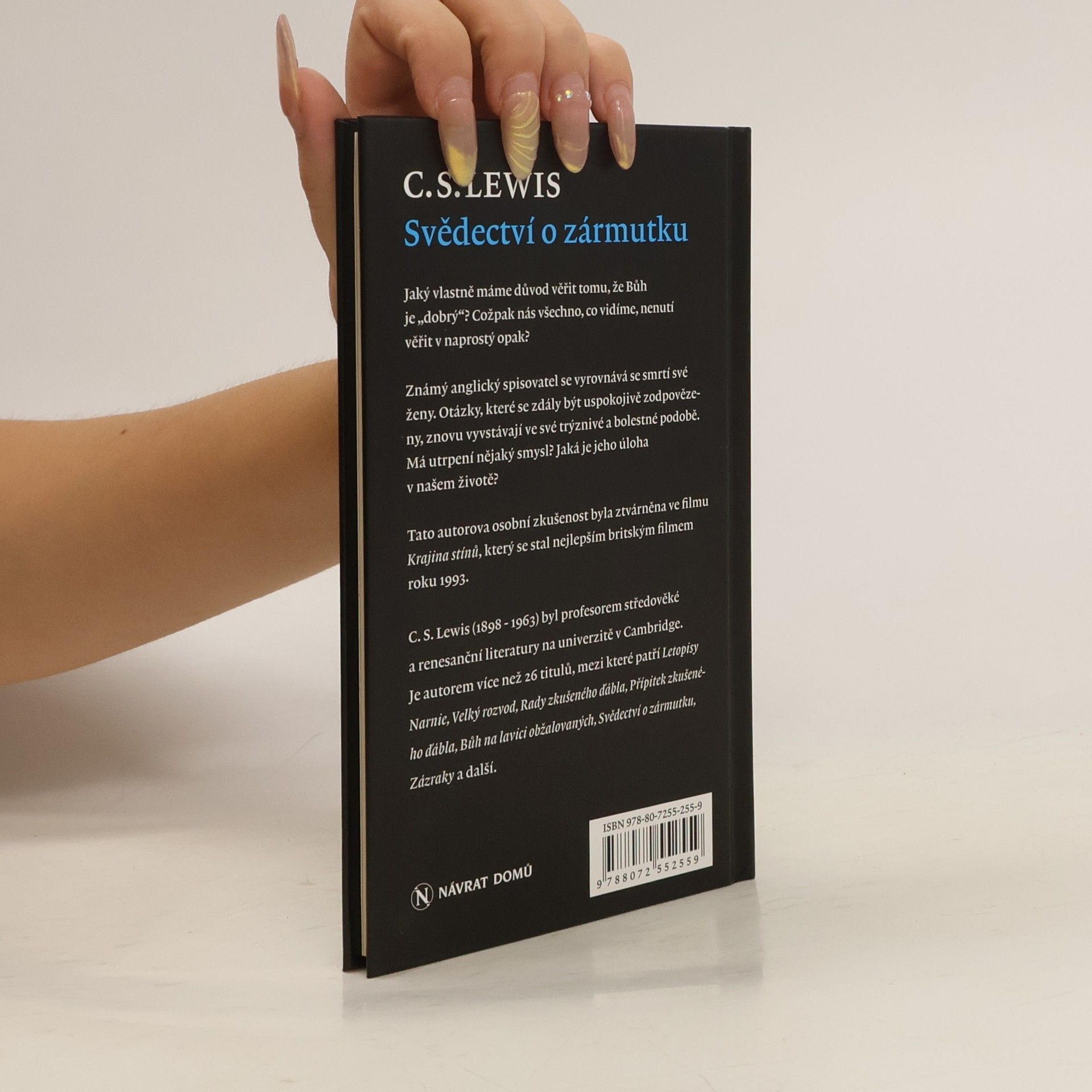 Jaký vlastně máme důvod věřit tomu, že Bůh je „dobrý"? Cožpak nás všechno, co vidíme, nenutí věřit v naprostý opak? Známý britský spisovatel se vyrovnává se smrtí své ženy. Otázky, které se zdály být uspokojivě zodpovězeny, znovu vyvstávají ve své trýznivé a bolestné podobě. Lewisova tragická zkušenost, které se úvahy dotýkají, byla ztvárněna v Britském filmu „Krajina stínů“. Kniha vyšla původně pod pseudonymem N. W. Clerk, protože Lewis si přál znemožnit identifikaci autora.