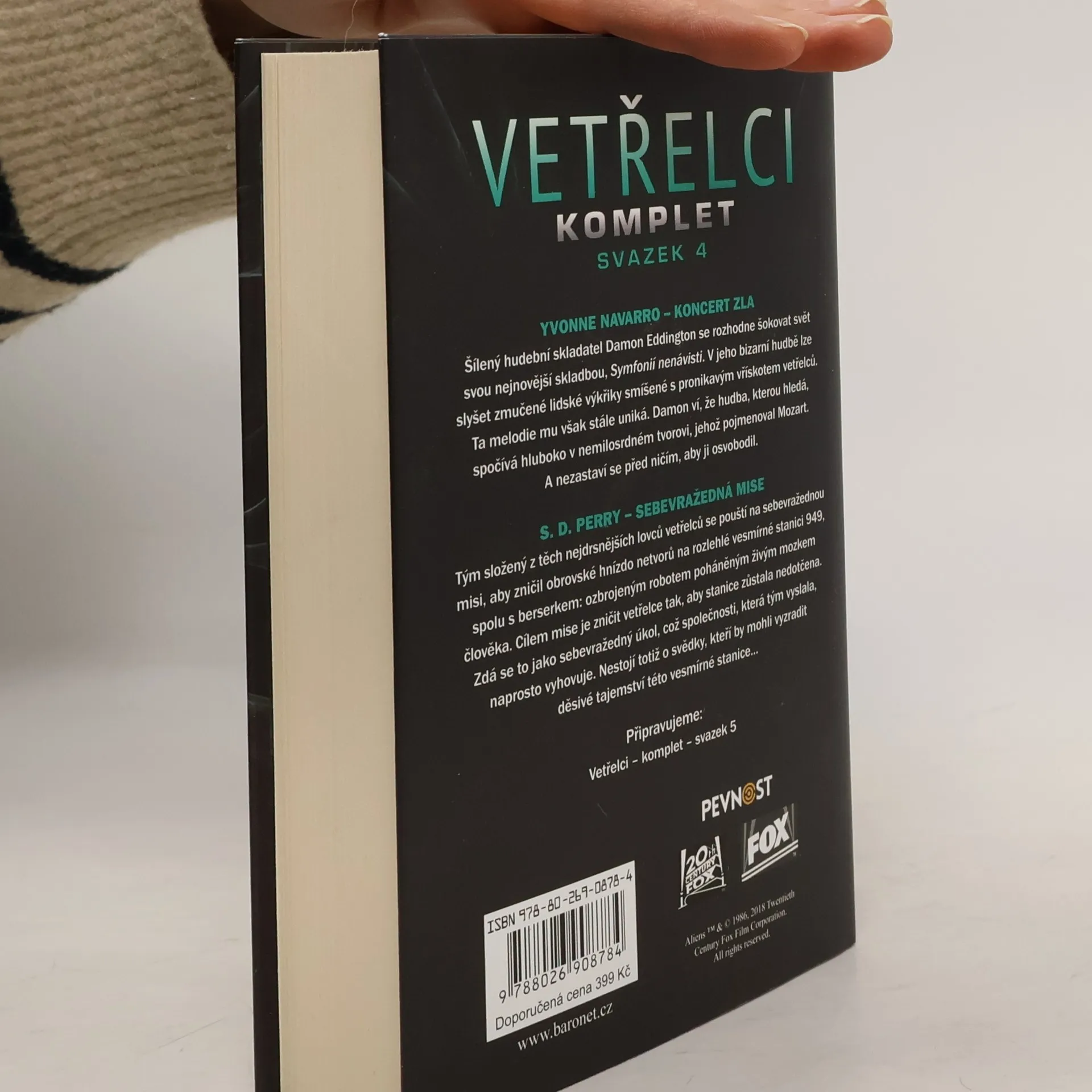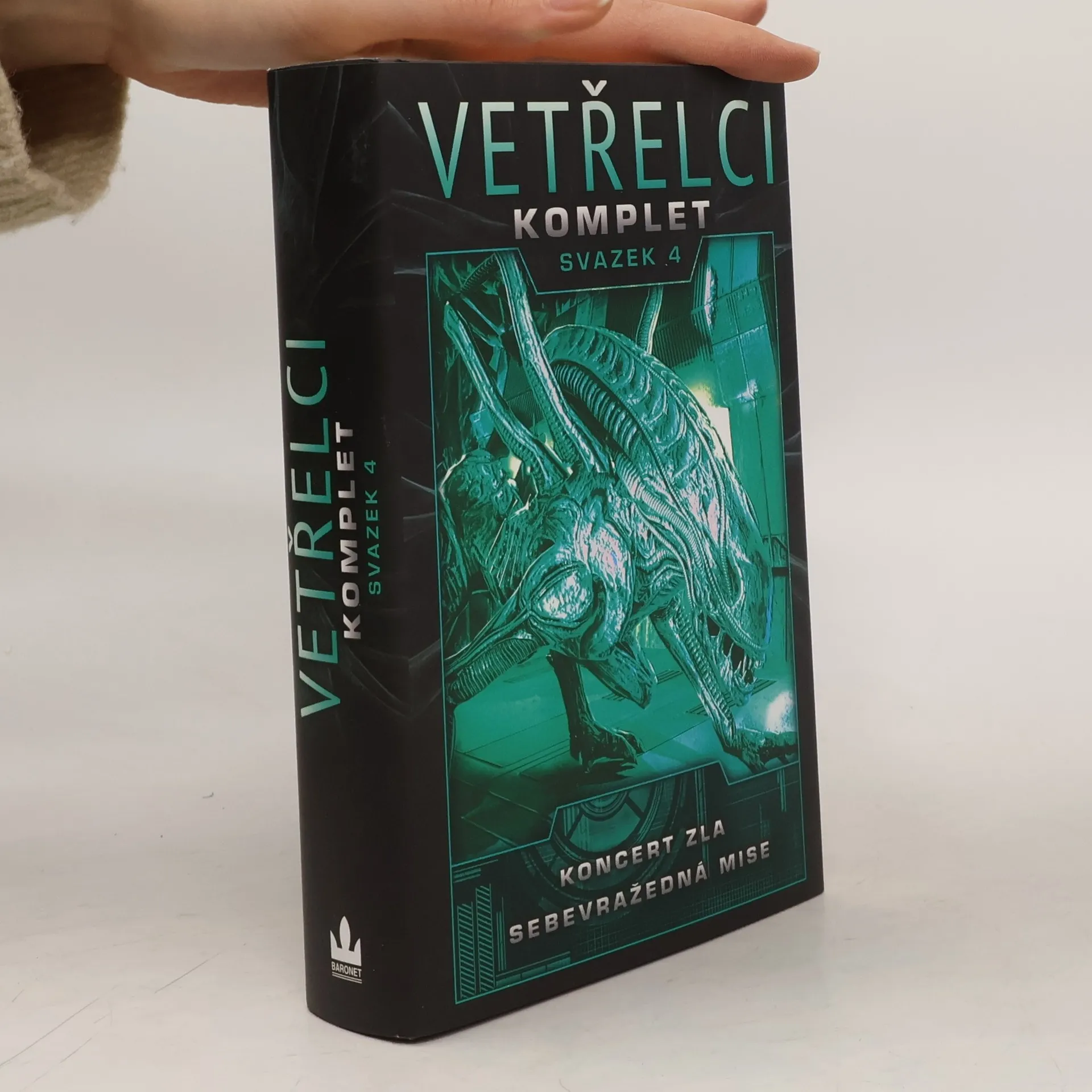 Čtvrtý svazek kompletní série Vetřelci obsahuje tyto romány: Yvonne Navarro: Koncert zla Šílený hudební skladatel se rozhodne šokovat svět svou nejnovější skladbou, Symfonií nenávisti. V jeho bizarní hudbě lze nalézt zmučené lidské výkřiky smíšené s pronikavým jekotem vetřelců. Ta melodie mu však stále uniká. Damon ví, že hudba, kterou hledá, spočívá hluboko v nemilosrdném tvorovi, jehož pojmenoval Mozart. A nezastaví se před ničím, aby ji osvobodil. S. D. Perry: Sebevražedná mise Tým složený z těch nejdrsnějších lovců vetřelců se pouští na sebevražednou misi, aby zničil obrovské hnízdo netvorů na DS 949, rozlehlé vesmírné stanici, spolu s berserkem: ozbrojeným xenomorfem poháněným živým mozkem, který kdysi patříval člověku. Cílem mise je zničit vetřelce tak, aby stanice zůstala nedotčena. Zdá se to jako sebevražedný úkol, což společnosti, která tým vyslala, naprosto vyhovuje. Nechce totiž svědky, kteří by mohli vyzradit děsivé tajemství této vesmírné stanice...