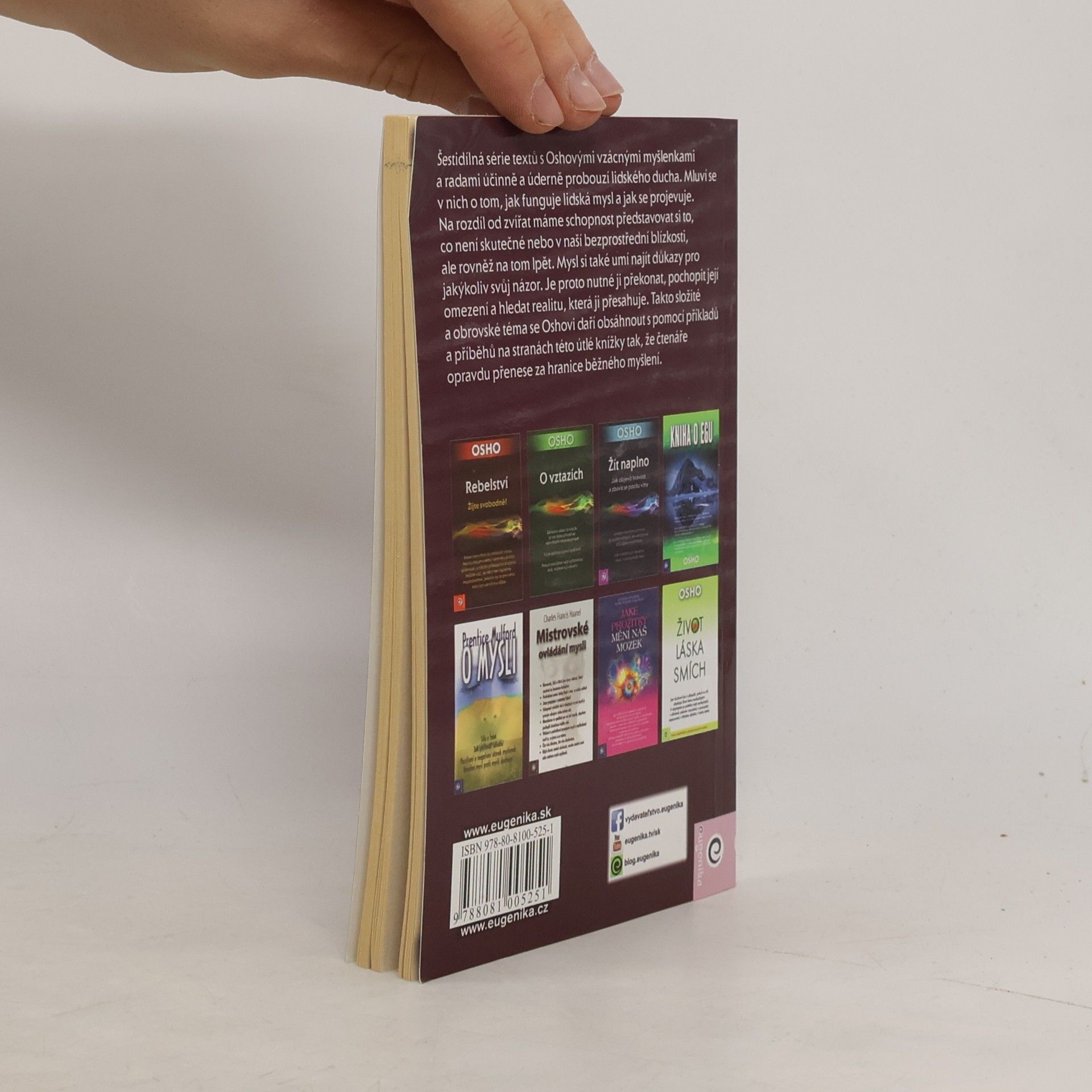 Šestidílná série drobných textů s Oshovými vzácnými myšlenkami a radami účinně a úderně probouzí lidského ducha. Mluví se v nich o tom, jak funguje lidská mysl a jak se projevuje. Na rozdíl od zvířat máme schopnost představovat si to, co není skutečné nebo v naší bezprostřední blízkosti, ale rovněž na tom lpět. Mysl si také umí najít důkazy pro jakýkoliv svůj názor. Je proto nutné ji překonat, pochopit její omezení a hledat realitu, která ji přesahuje. Takto složité a obrovské téma se Oshovi daří obsáhnout s pomocí příkladů a příběhů na stranách této útlé knížky tak, že čtenáře opravdu přenese za hranice běžného myšlení.