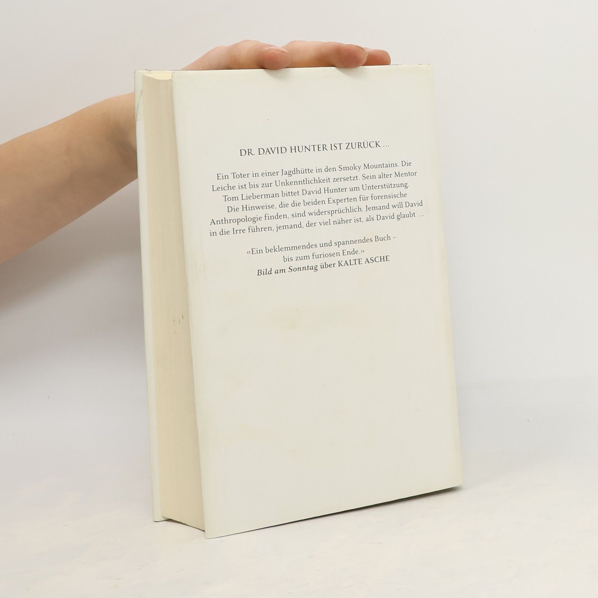 Ein Toter in einer Jagdhütte in den Smoky Mountains. Die Leiche ist bis zur Unkenntlichkeit zersetzt. Sein alter Mentor Tom Lieberman bittet David Hunter um Unterstützung. Die Hinweise, die die beiden Experten für forensische Anthropologie finden, sind widersprüchlich. Jemand will David in die Irre führen, jemand, der viel näher ist, als David glaubt ...