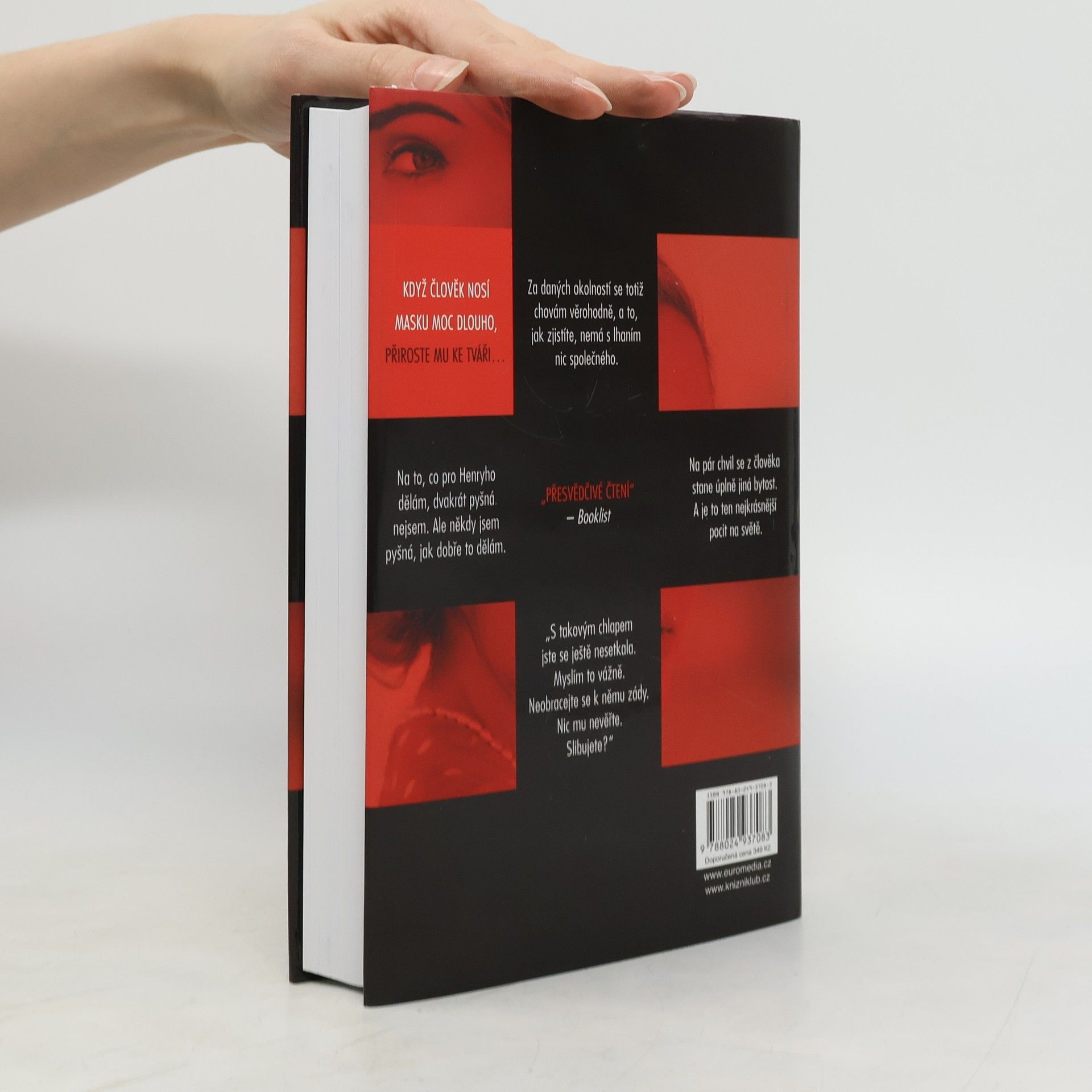 Když člověk nosí masku moc dlouho, přiroste mu ke tváři… Temný psychologický thriller od autora loňského bestselleru Ta přede mnou! Mladá ctižádostivá herečka Claire zoufale potřebuje práci a peníze, proto se rozhodne přijmout nabídku stejně tak amorální jako nebezpečnou – má být jakousi volavkou právnické firmy specializující se na rozvodové pře. Jejím úkolem je svést ženatého muže, vše zdokumentovat a důkazy posléze předat „podvedené“ manželce, aby je mohla použít u soudu. Jenomže potom je žena jednoho z jejích cílů nalezena mrtvá a Claire se stává hlavní podezřelou. O pár měsíců později je však stejnými vyšetřovateli naopak požádána o pomoc. Policie chce, aby se vetřela do života manžela zavražděné – tedy jediného muže, jehož se jí svést nepodařilo. Se svou rolí se však sžije až příliš dokonale…