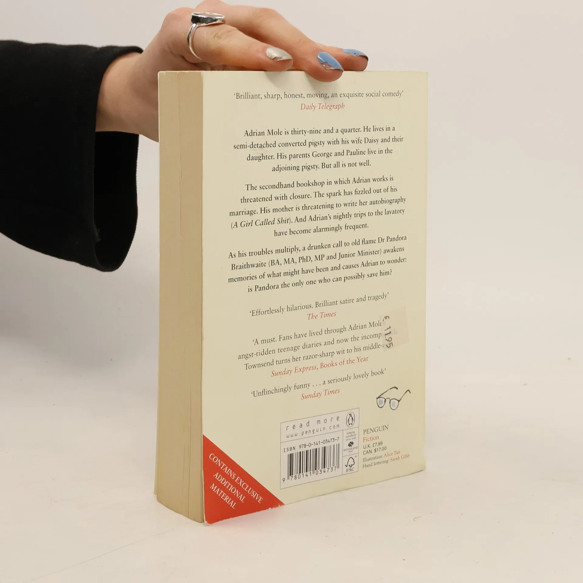 Adrian Mole is 39 and a quarter. Unable to afford the mortgage on his riverside apartment, he has been forced to move into a semi-detached converted pigsty next door to his parents, George and Pauline. His ravishing wife Daisy loathes the countryside, longs for Dean Street and has yet to buy a pair of Wellingtons; they are both aware the passion has gone out of their marriage, but neither knows how to reignite the flame. To cap it all off, Adrian is leaving his bed numerous times a night to go to the lavatory and has other alarming symptoms, leading him to suspect prostate trouble. Meanwhile, his mother thinks that an appearance on the Jeremy Kyle show might solve the mystery of her daughter’s paternity once and for all. And when George is asked to provide a DNA sample, will the shock kill him? He is already disabled, though still chain smoking and has had an ashtray welded onto the arm of his wheelchair. As Adrian’s worries multiply, a phone call to his old flame Dr Pandora Braithwaite, BA, MA, PhD, MP and Junior Minister in the Foreign Office, ignites memories of a shared passion and makes him wonder – is she the only one who can save him now?