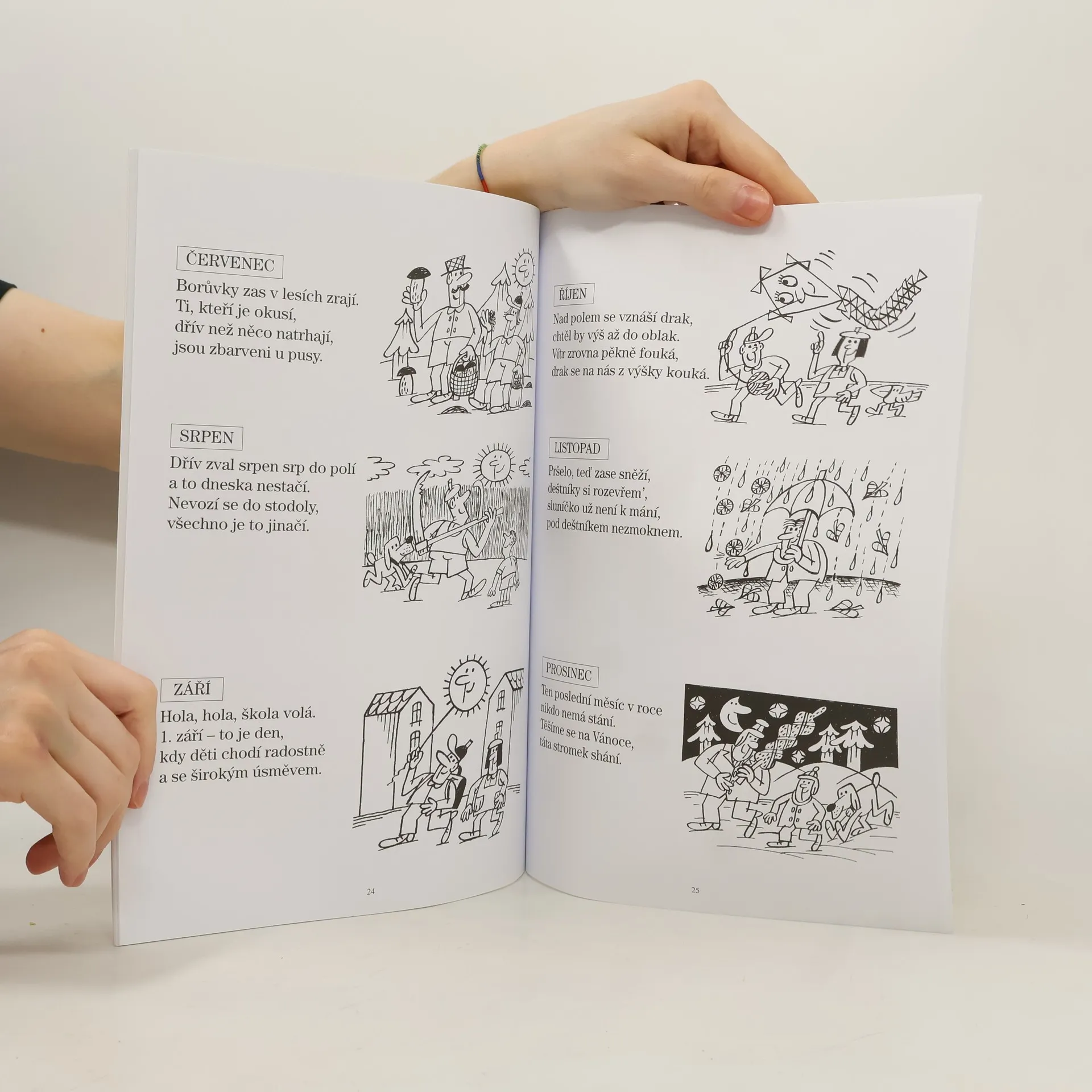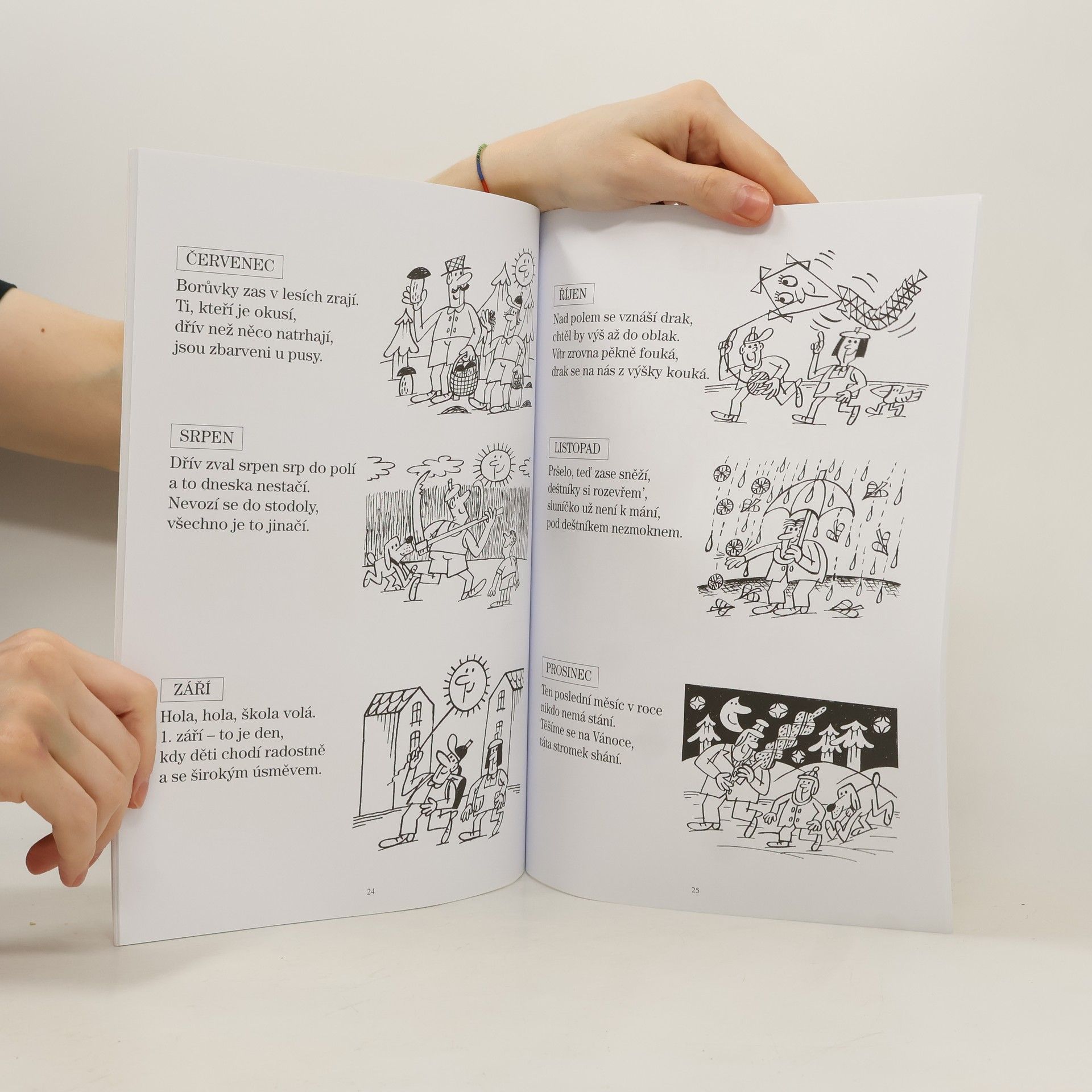 Pracovní sešit obsahuje kreslené uvolňovací cviky pro nácvik tahů potřebných ke zvládnutí psaní. Děti se učí napodobovat tvary písmen a číslic. Rýmované veršíky s přirovnáním a vtipnou ilustrací pomáhají přiblížit počet 0-10, jednotlivé dny v týdnu,měsíce v roce i roční období.