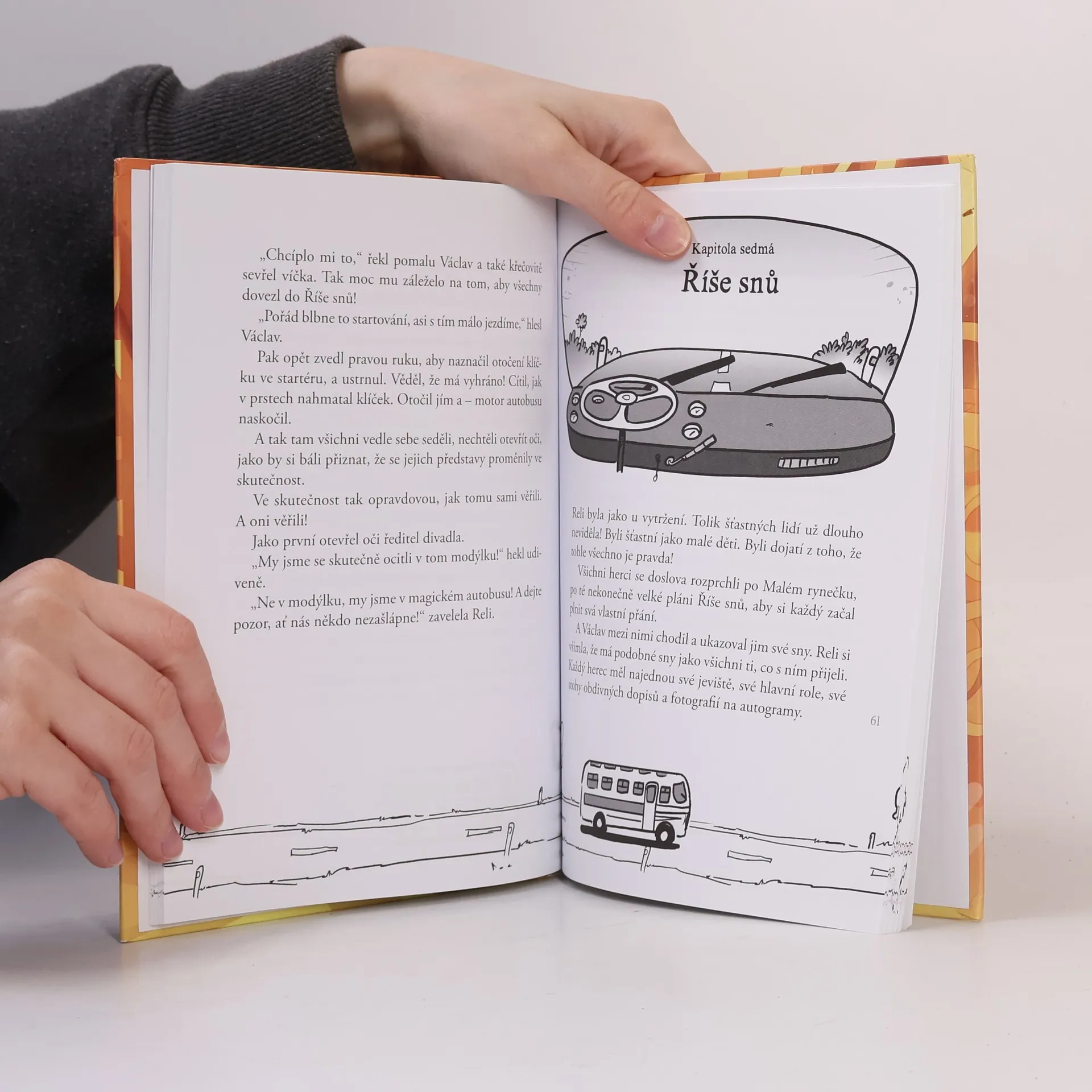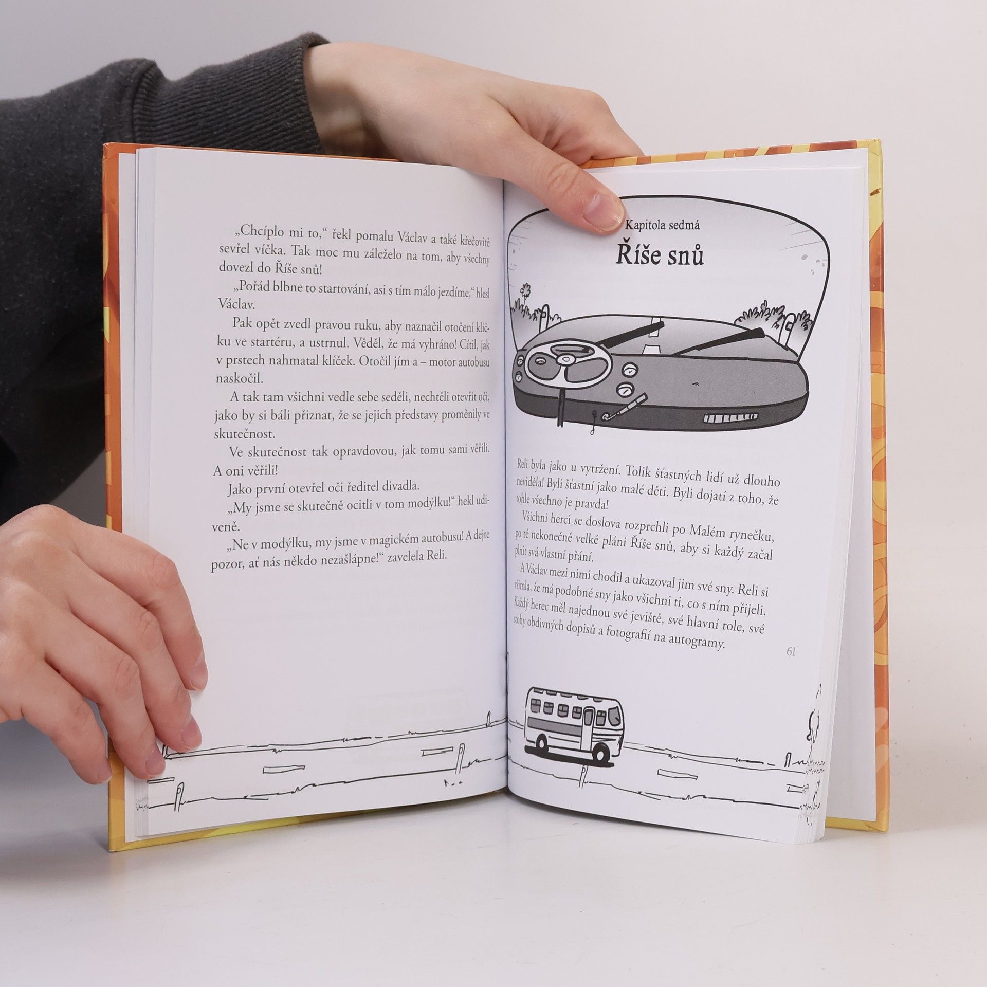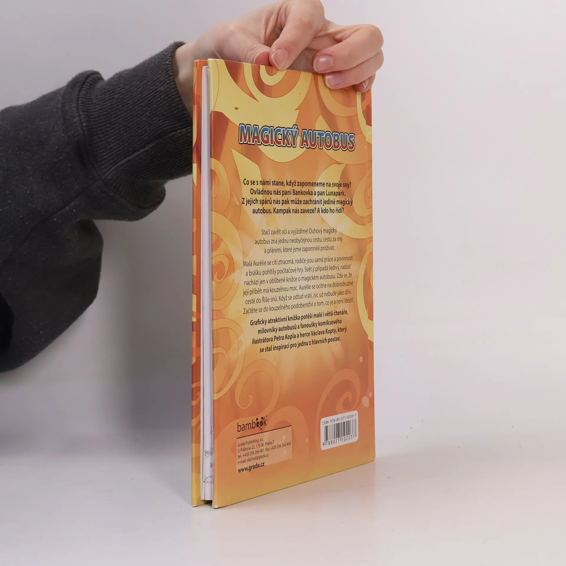 Stačí zavřít oči a vyjíždíme! Duhový magický autobus zná jednu zapomenutou cestu, cestu do snů a pohádkových příběhů, které jsme zapomněli prožívat. Malá Aurélie se cítí ztracená, rodiče jsou samá práce a povinnost a brášku pohltily počítačové hry. Svět jí připadá šedivý. Radost nachází jen v oblíbené knížce o magickém autobusu. Zdá se, že její příběh má kouzelnou moc. Aurélie se ocitne na dobrodružné cestě do Říše snů. Když se odtud vrátí, nic už nebude jako dřív. Začtěte se do kouzelného podobenství o tom, co je a není štěstí! Graficky atraktivní knížka potěší malé i větší čtenáře, milovníky autobusů a fanoušky ilustrátora Petra Kopla a herce Václava Kopty, který se stal inspirací pro jednu z hlavních postav.