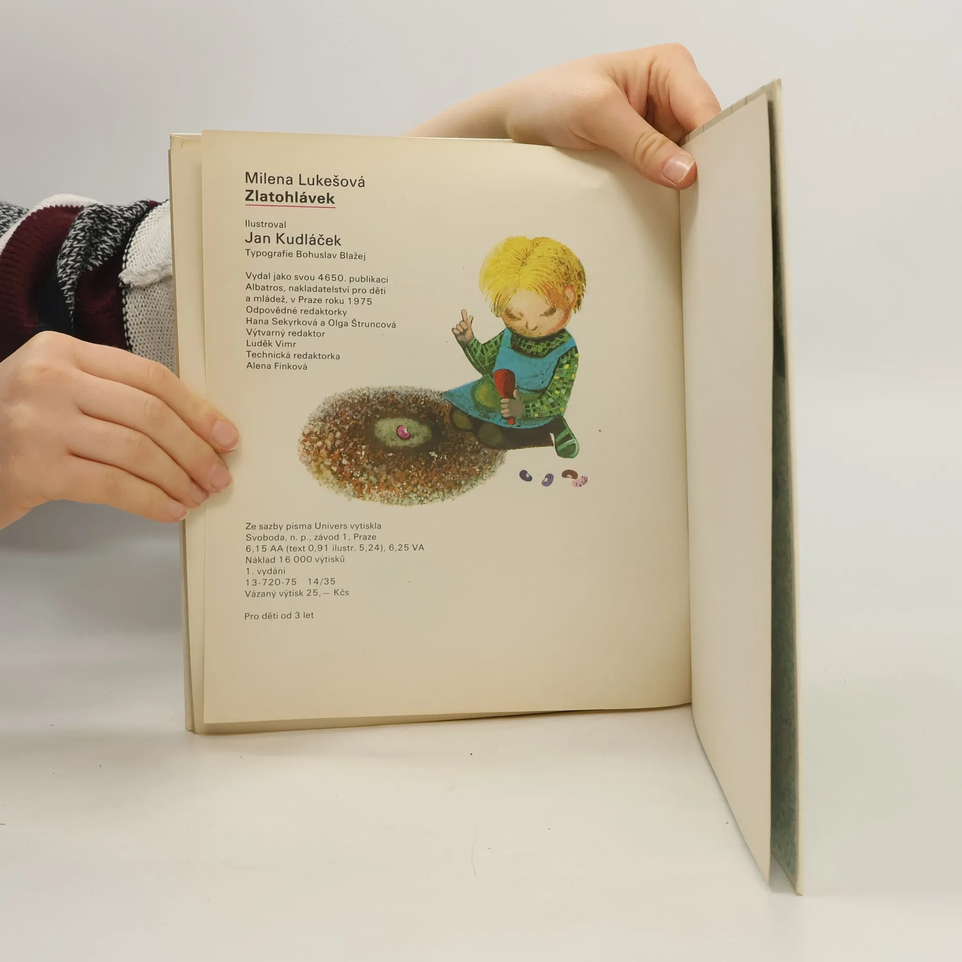 Vyprávění provází jedním dnem chlapce Zlatohlávka, který si na dvorku a na zahrádce vystačí při hře s pejskem a kočičkou sám, pozoruje i ostatní zvířata, všímá si předmětů kolem, učí se poznávat jejich funkci a tak se seznamuje s nejbližším okolím. Pro děti od 3 let.