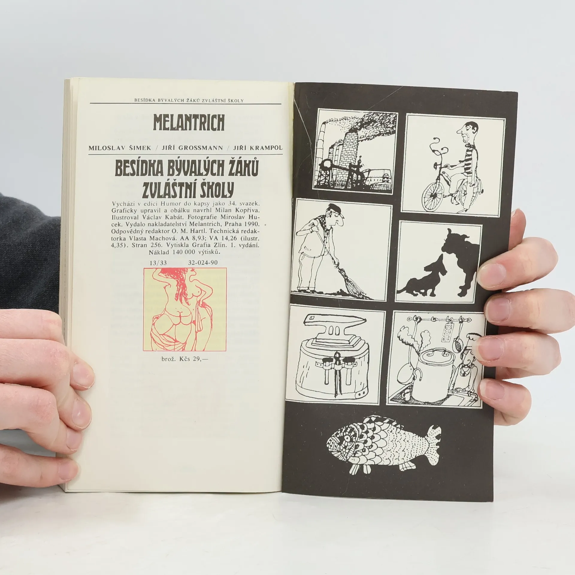 Kniha obsahuje povídky našich předních komiků Miloslava Šimka, Jiřího Grossmanna a Jiřího Krampola. Dělí se na dvě části. V první části jsou povídky, které napsal v kavárně Slavie MŠ s již zesnulým JG. V druhé polovině publikace se setkáváme s humornými příběhy MŠ a JK. Všichni tři herci působili resp. působí v divadle Semafor, kde uvedli hry „Besídka žáků zvláštní školy“ resp. „Besídka bývalých žáků zvláštní školy“, podle nichž byla napsána tato kniha.