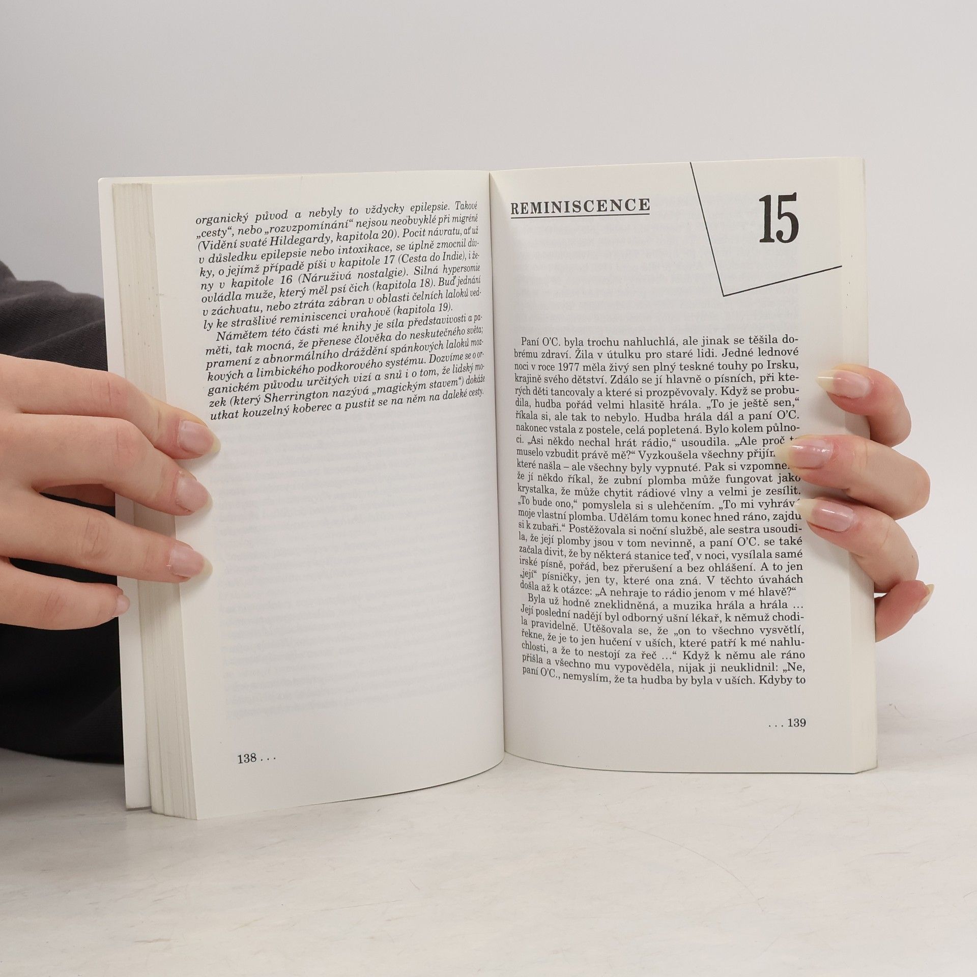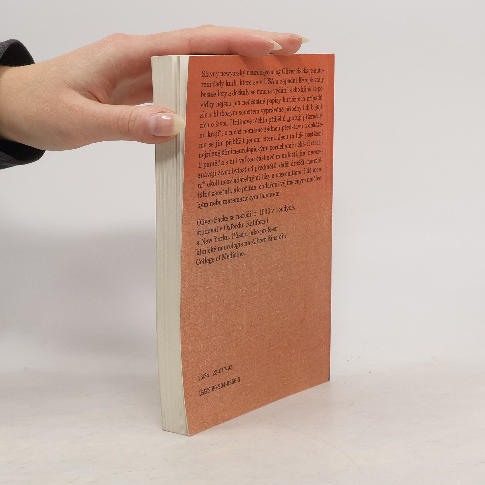 Slavný newyorský neuropsycholog Oliver Sacks je autorem řady knih, které se v USA a západní Evropě staly bestsellery a dočkaly se mnoha vydání. Jeho klinické povídky nejsou jen neúčastné popisy kuriózních případů, ale s hlubokým soucitem vyprávěné příběhy lidí bojujících o život. Hrdinové těchto příběhů „putují přízračnými kraji“, o nichž nemáme žádnou představu a dokážeme se jim přiblížit jen citem. Jsou to lidé postižení nejrůznějšími neurologickými poruchami: někteří ztratili paměť a s ní i velkou část své minulosti, jiní nerozeznávají živou bytost od předmětů, další dráždí „normální“ okolí neovladatelnými tiky a obscenitami; lidé mentálně zaostalí, ale přitom obdaření výjimečným uměleckým nebo matematickým talentem. (nakladatel)