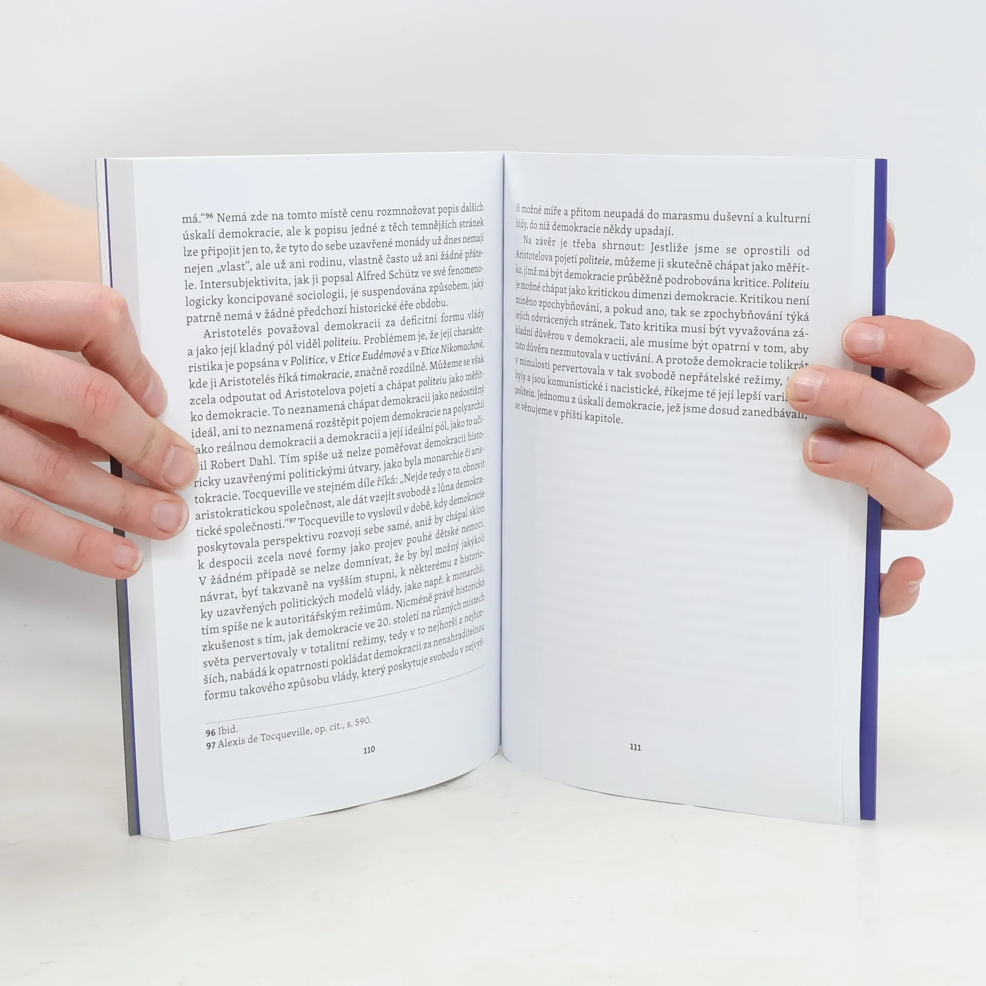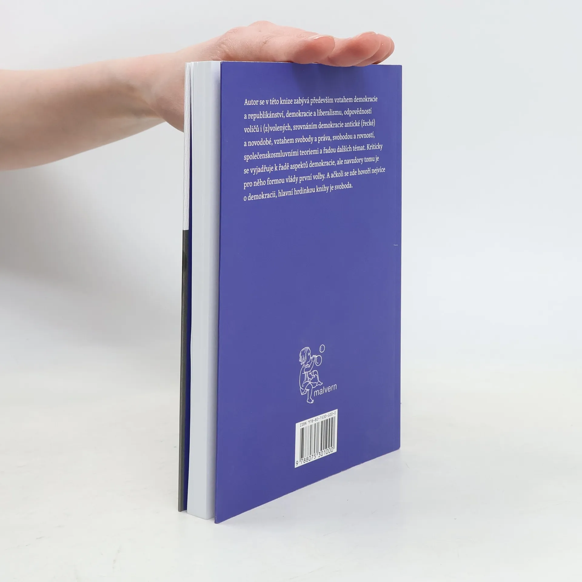 Abychom mohli poskytovat politice prostor pouze v té míře, která nám umožní se zabývat důležitějšími věcmi, musíme se v ní angažovat. Pokud ji necháme jen na těch, kteří nás chtějí o toto právo připravit, budeme se muset politikou zabývat proti své vůli, a proto se nebudeme moci zabývat důležitějšími věcmi, než je právě ona. Tato kniha se nejen zabývá aporiemi demokracie, ale rovněž vyvrací obecně sdílenou představu o ekvivalenci této politické formy vládnutí a svobody. Tématem knihy je svoboda, ačkoli se v ní daleko více hovoří o demokracii. Svoboda je více než demokracie a proto nelze obě bez dalšího synonymizovat. V různých souvislostech je v této knize několikrát zdůrazněno, že svoboda se neváže jenom k demokracii a že za různých historických období existovala svoboda i v politických režimech, jež poměřujeme ahistoricky našimi současnými měřítky a o nichž se mylně domníváme, že je se svobodou nemůžeme spojovat. K demokracii bytostně patří permanentní nebezpečí, že se obrátí ve svůj opak, jak to vidíme názorně v řadě konkrétních historických případů, které jsou dostatečně známy. Autor se zabývá vztahem demokracie a republikánství a vztahem demokracie a liberalismu, srovnáním demokracie antické (řecké) a novodobé, vztahem svobody a práva, svobodou a rovností, společensko-smluvními teoriemi a řadou dalších aspektů. Předmluva: Miroslav Novák.