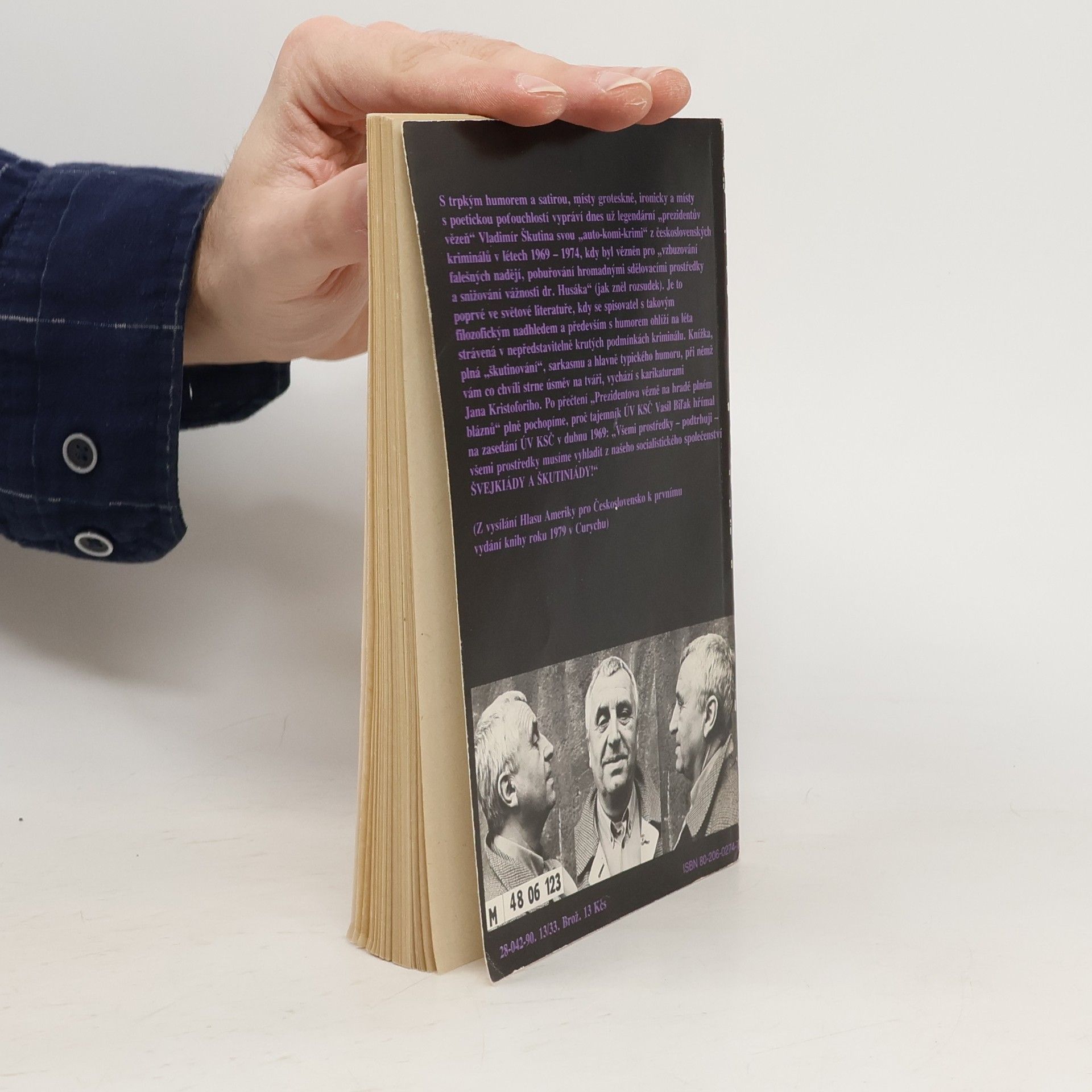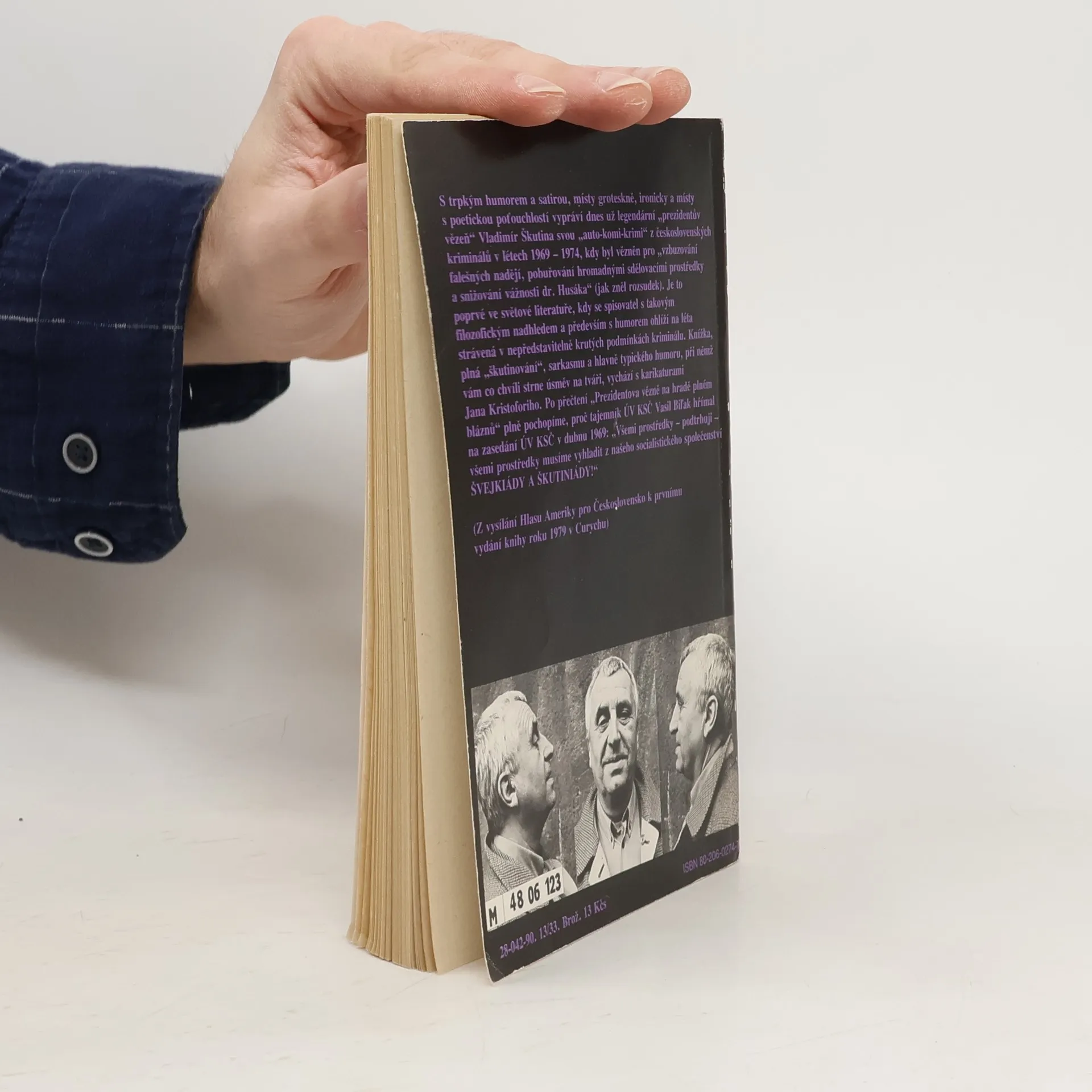 S trpkým humorem a satirou, místy groteskně, ironicky a místě s poetickou poťouchlostí vypráví dnes už legendární 'prezidentův vězeň' Vladimír Škutina svou 'auto-komi-krimi' z československých kriminálů v létech 1969 - 1974, kdy byl vězněn pro 'vzbuzování falešných nadějí, pobuřování hromadnými sdělovacími prostředky a snižování vážnosti dr. Husáka' (jak zněl rozsudek). Je to poprvé ve světové literatuře, kdy se spisovatel s takovým filozofickým nadhledem a především s humorem ohlíží na léta strávená v nepředstavitelně krutých podmínkách kriminálu. Knížka, plná 'škutinování', sarkasmu a hlavně typického humoru, při němž vám co chvíli strne úsměv na tváři, vychází s karikaturami Jana Kristoforiho.