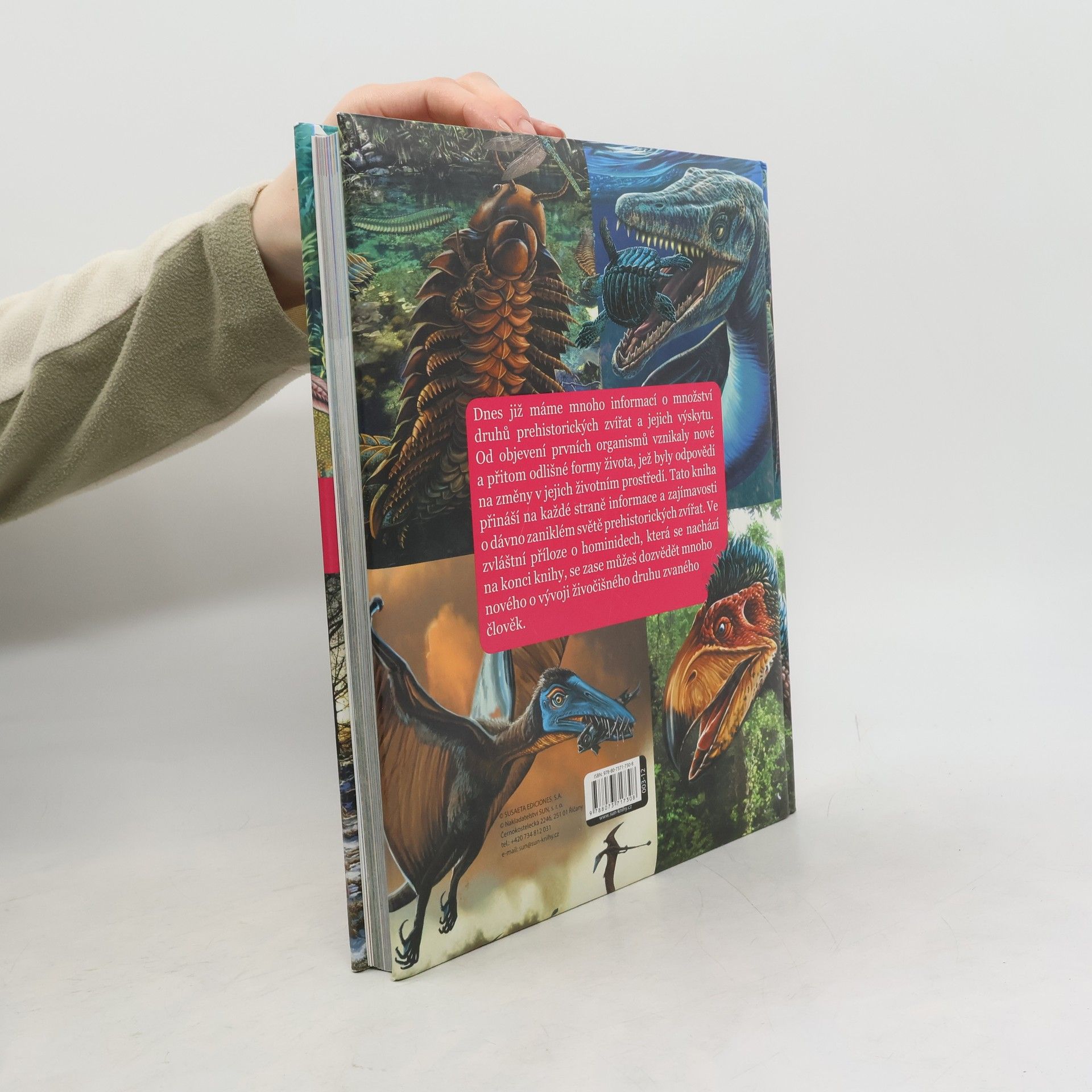 Dnes již máme mnoho informací o množství druhů prehistorických zvířat a jejich výskytu. Od objevení prvních organismů vznikaly nové a přitom odlišné formy života, jež byly odpovědí na změny v jejich životním prostředí. Tato kniha přináší na každé straně informace a zajímavosti o dávno zaniklém světě prehistorických zvířat. Ve zvláštní příloze o hominidech, která se nachází na konci knihy, se zase můžeš dozvědět mnoho nového o vývoji živočišného druhu zvaného člověk.