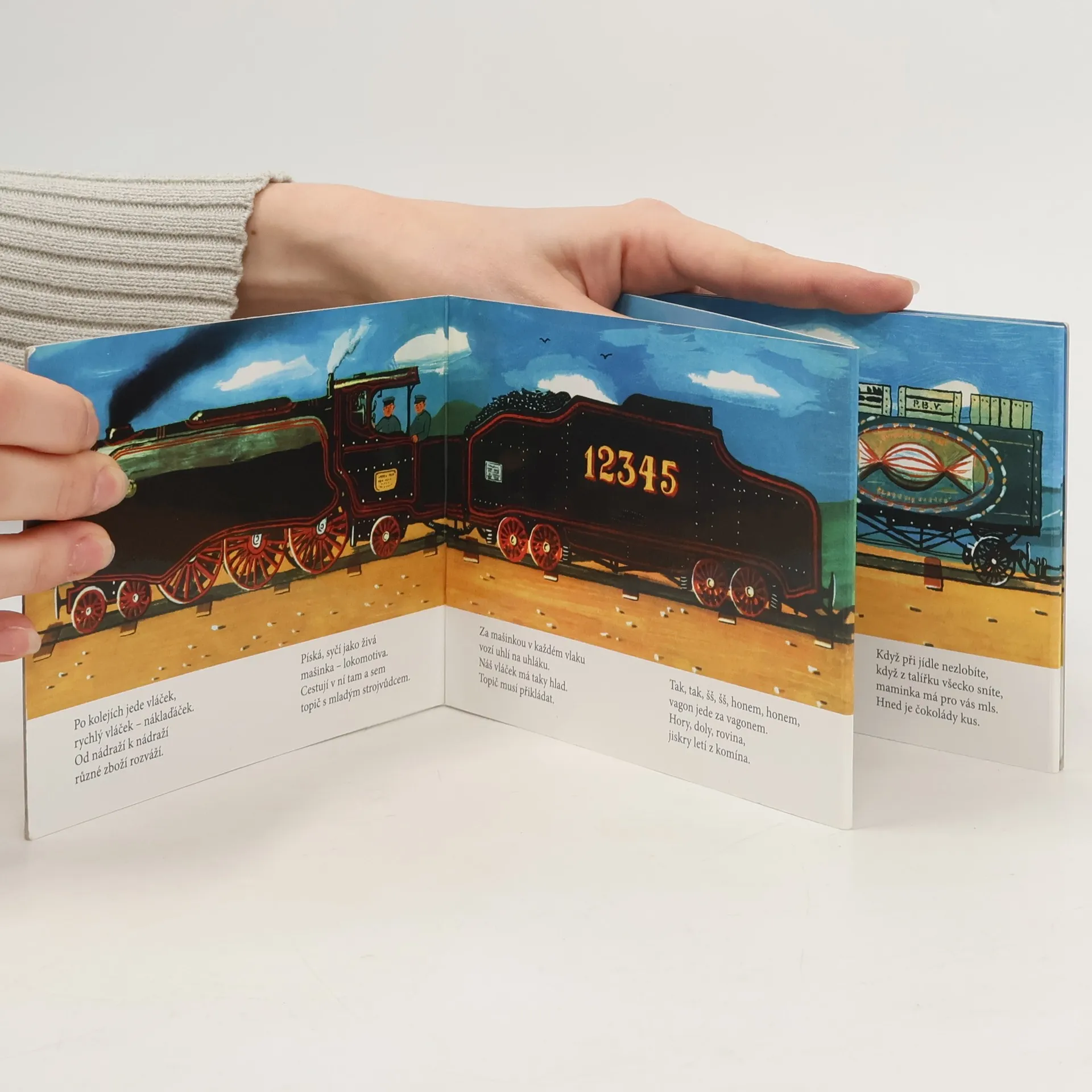 Po kolejích jede vláček, rychlý vláček – náklaďáček. Od nádraží k nádraží různé zboží rozváží. Leporelo s dlouhým nákladním vlakem Kamila Lhotáka zaujme každého malého kluka. A protože jde o vlak s parní lokomotivou, určitě zaujme i tatínky, kteří svým potomkům jistě rádi vysvětlí, že dnes už takový vlak uvidí na kolejích jen výjimečně, protože technika se od prvního vydání této knížky (rok 1954!) velmi výrazně zdokonalila a zmodernizovala. Obrázky doprovázejí verše Josefa Hiršala.