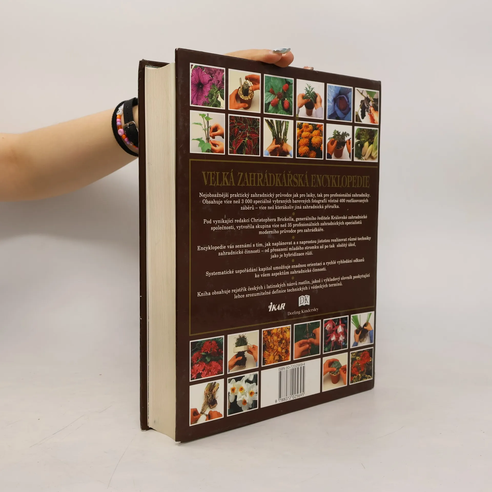 Praktický průvodce zahrádkářskými technikami, navrhováním a údržbou výsadeb i pěstováním květin, okrasných rostlin, ovoce a zeleniny.Nejobsažnější praktický zahradnický průvodce pro laiky i profesionální zahradníky obsahuje více než 3000 barevných fotografií včetně 400 rozfázovaných záběrů. Encyklopedie vás seznámí s tím, jak naplánovat a realizovat různé techniky zahradnické činnosti - od přesazení mladého stromku až třeba po složitou hybridizaci růží. Systematické uspořádání kapitol usnadňuje orientaci a rychlé vyhledávání odkazů ke všem aspektům zahradnické činnosti. Kniha obsahuje rejstřík českých i latinských názvů rostlin, jakož i výkladových slovník poskytující srozumitelné definice technických a vědeckých termínů. Chybné ISBN 80-7202569-4, správné ISBN je 80-7202-569-4. (zdroj: Databáze Národní knihovny ČR)... celý text