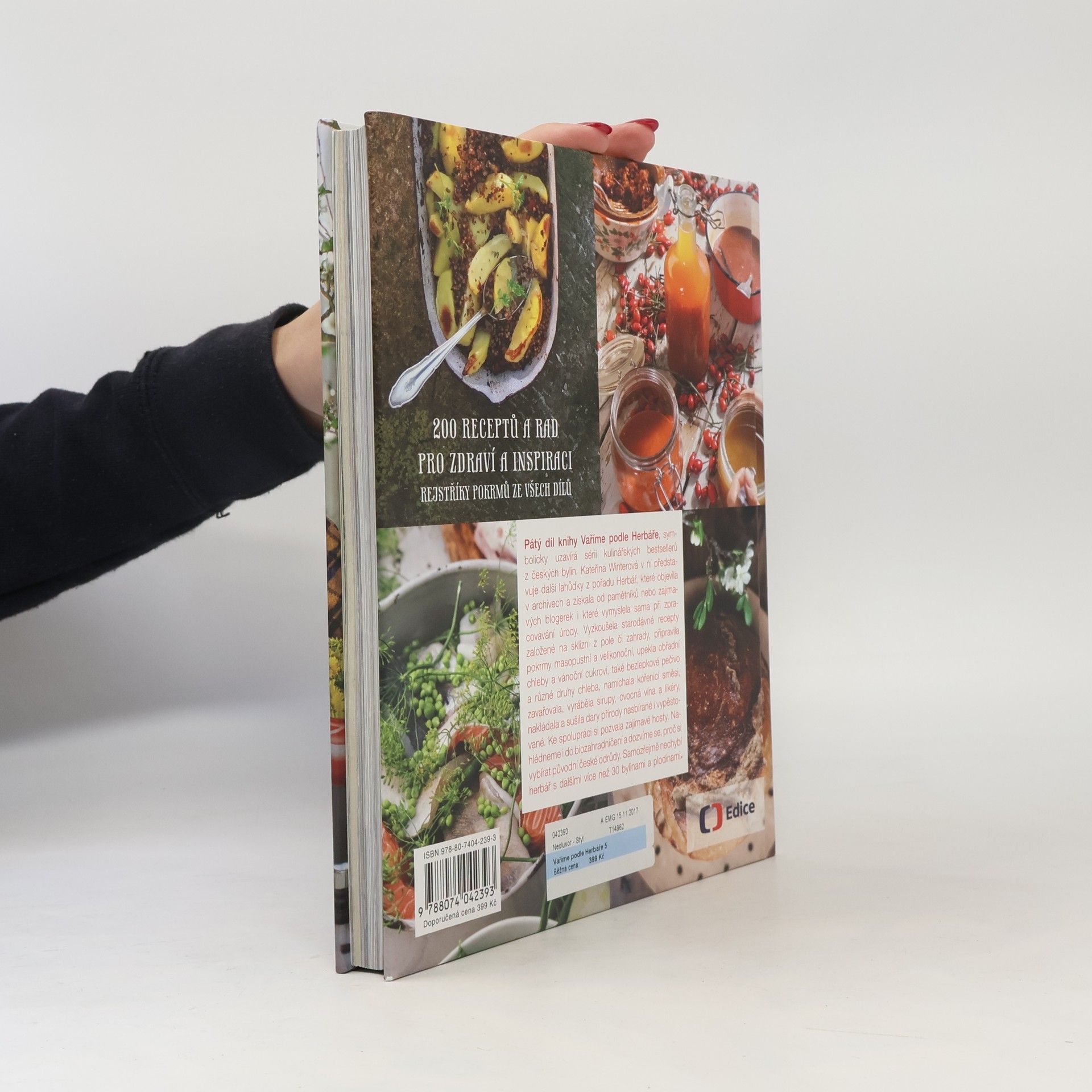 Pátý díl knihy Vaříme podle Herbáře symbolicky uzavírá sérii kulinářských bestsellerů z českých bylin. Kateřina Winterová v ní s Lindou Rybovou představuje další lahůdky z pořadu Herbář, které objevila v archivech a získala od pamětníků nebo zajímavých blogerek i které vymyslela sama při zpracovávání úrody. Vyzkoušela starodávné recepty založené na sklizni z pole či zahrady, na pokrmy masopustní a velikonoční dobroty, na obřadní chleby a vánoční cukroví, ale také na bezlepkové pečivo a různé druhy chleba, připravila kořenicí směsi, zavařovala, nakládala a sušila dary přírody nasbírané i vypěstované. Kniha by nebyla úplná bez bylinných zavařenin, sirupů, tinktur, ovocných vín a likérů. Kromě vaření s bylinami nahlédneme také do biozahradničení a dozvíme se, proč si vybírat původní české odrůdy. Samozřejmě nechybí herbář s dalšími více než 30 bylinami a plodinami. Všichni, kteří vaří podle Herbáře, jistě ocení rejstříky pokrmů ze čtyř předchozích knih.