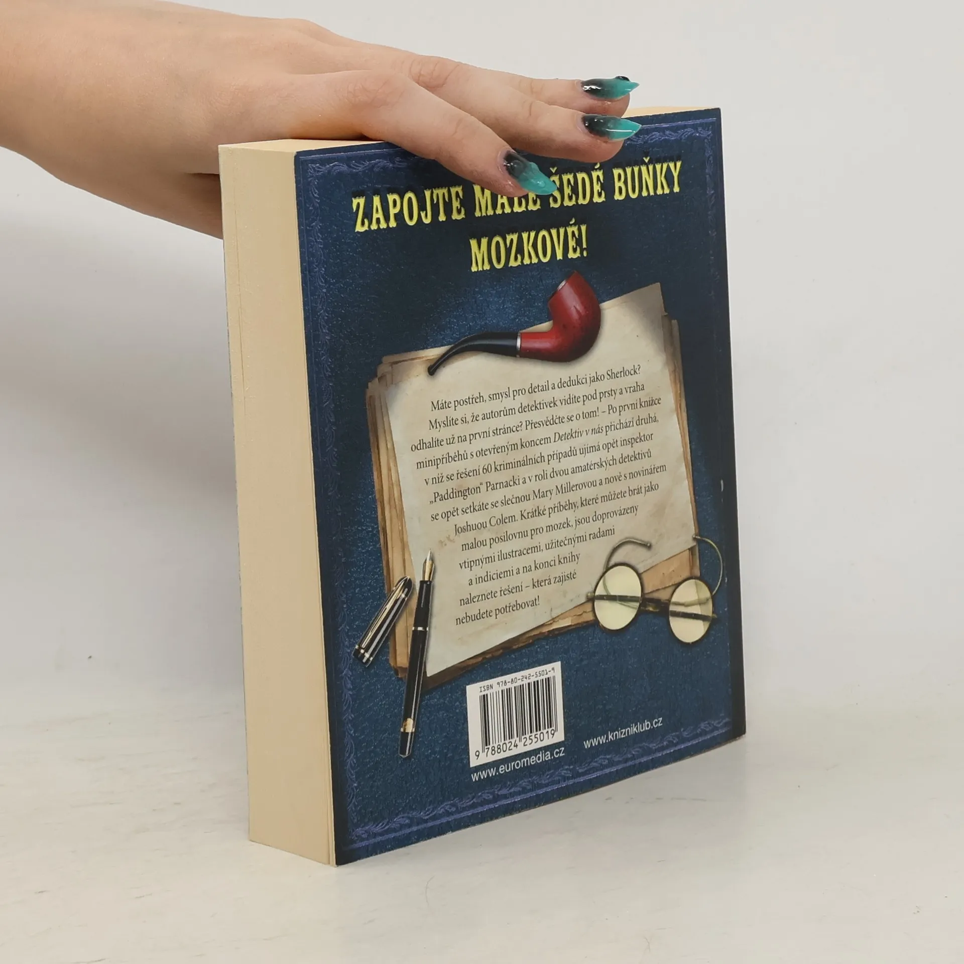 Máte postřeh, smysl pro detail a dedukci jako Sherlock? Myslíte si, že autorům detektivek vidíte pod prsty a vraha odhalíte už v druhé kapitole? Přesvědčte se o tom! – Po první knížce minipříběhů s otevřeným koncem Detektiv v nás přichází druhá, v níž se řešení 60 kriminálních případů ujímá opět inspektor „Paddington“ Parnacki a v roli dvou amatérských detektivů slečna Mary Millerová a novinář Joshua Cole. Krátké příběhy, které můžete brát jako malou posilovnu pro mozek, jsou doprovázeny vtipnými ilustracemi, užitečnými radami a indiciemi a na konci knihy naleznete řešení – která zajisté nebudete potřebovat!
