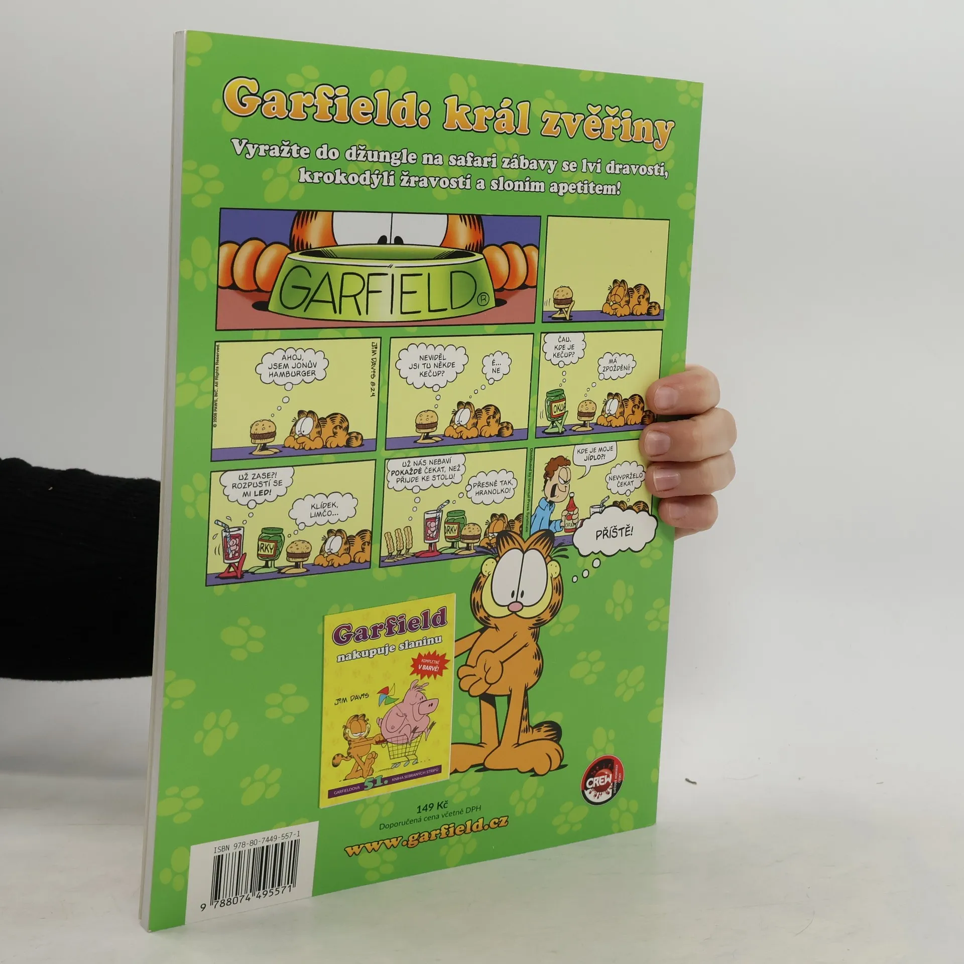 50. sešit stripů nejlínějšího, nejnenažranějšího a nejzábavnějšího kocoura na světě! Zabarikádujte ledničku, zavřete sušenky do sejfu, povolejte na ochranu svého psa lidovou milici - přichází Garfield! Arogantní, agresivní, sobecký, sadistický, líný, nenažraný, cynický a filozofický kocour se značně zkresleným pohledem na osobní vlastnictví.