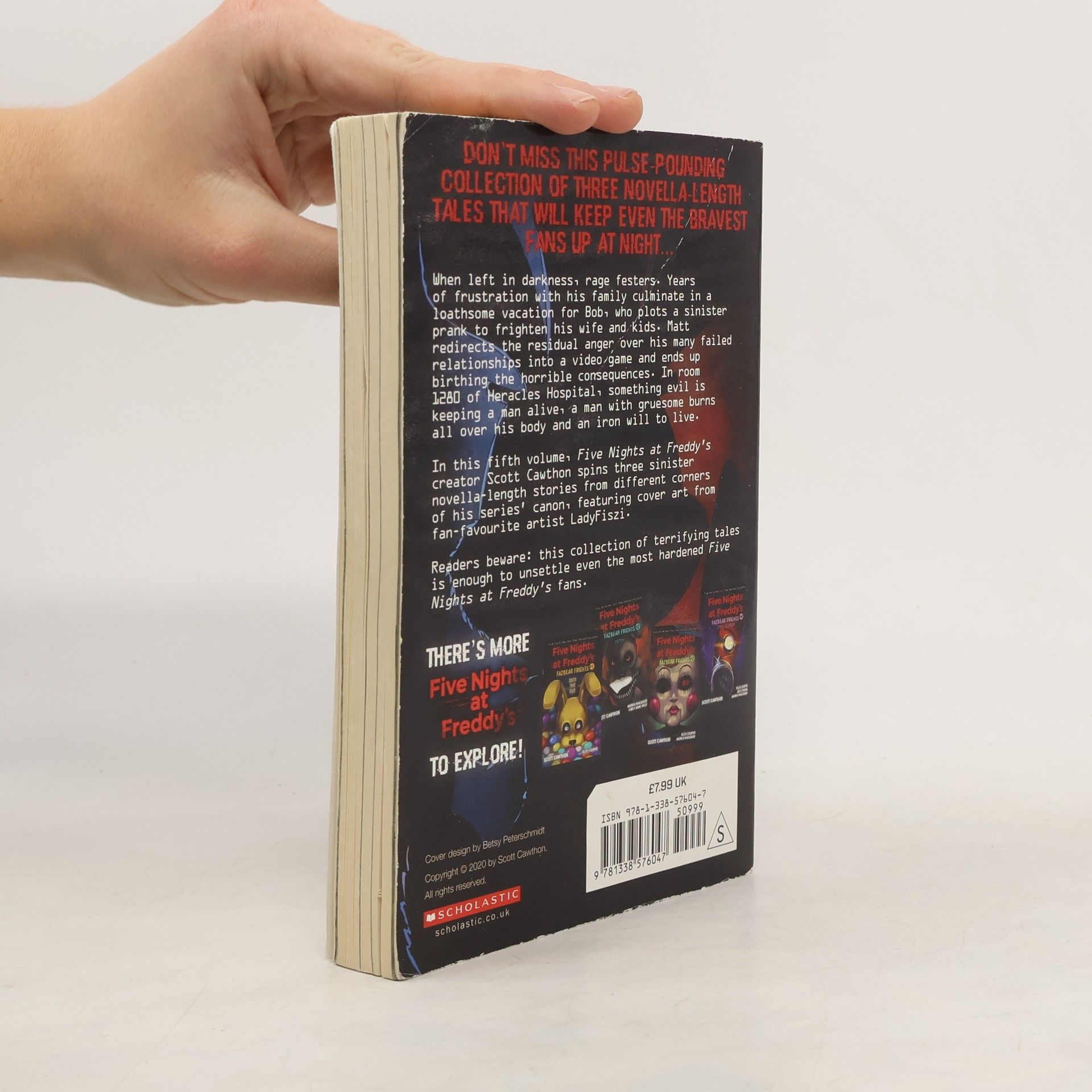 Five Nights at Freddy's fans won't want to miss this pulse-pounding collection of three novella-length tales that will keep even the bravest FNAF player up at night...From twisted toys to gut-wrenching games, this collection of terrifying tales is unsettling enough to mess with even the most hardened Five Nights at Freddy's fans. In this volume, series creator Scott Cawthon spins three sinister novella-length stories from different corners of FNAF's canon. Each story comes complete with accompanying artwork from a fan-favorite game artist to bring the horror to life in a whole new way. Readers beware: In this startling world, desperate wishes have an unexpected cost, beautiful trinkets reveal appalling powers, and harmless pranks can go awry in ghastly ways.