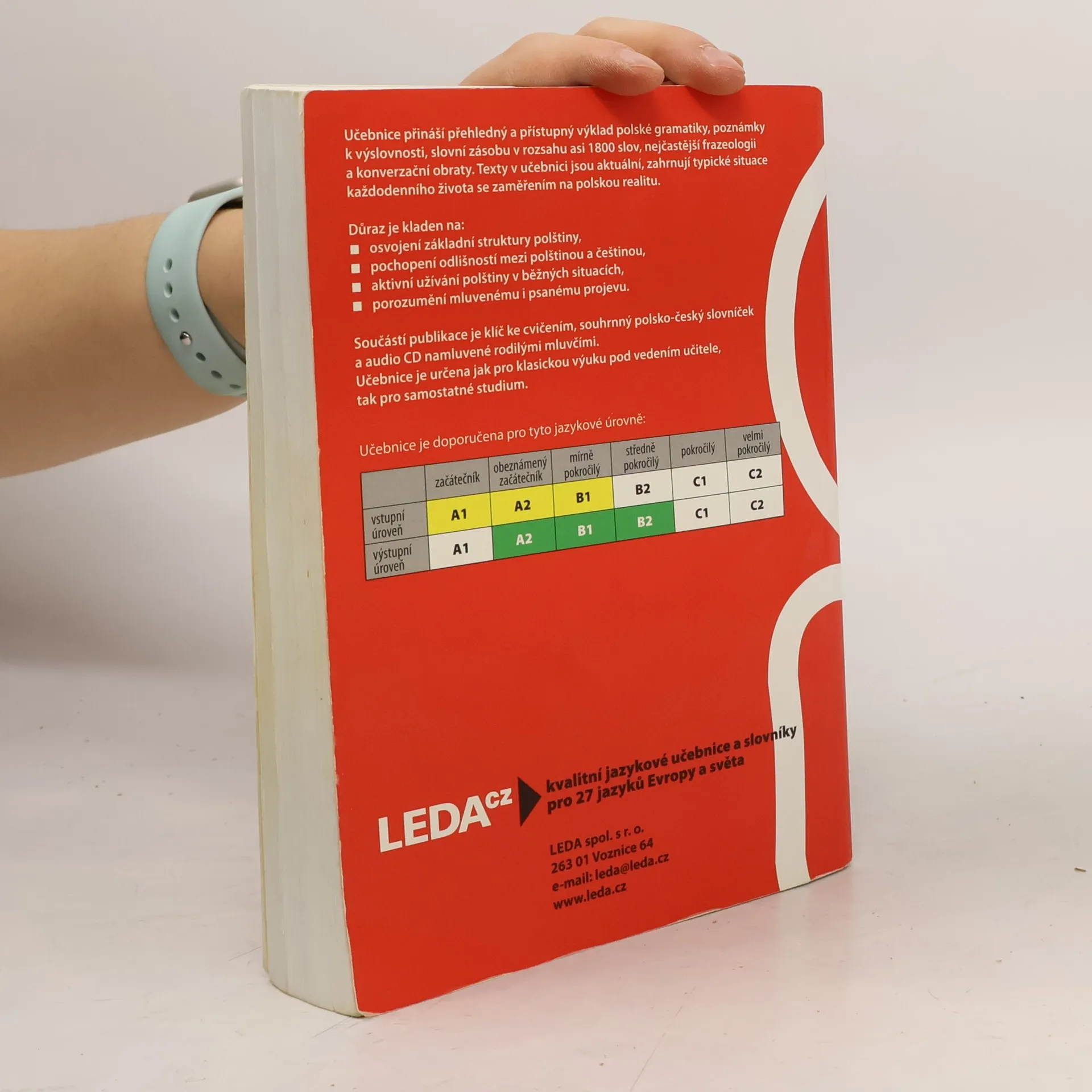 Učebnice přináší přehledný a přístupný výklad polské gramatiky, poznámky k výslovnosti, slovní zásobu v rozsahu asi 1800 slov, nejčastější frazeologii a konverzační obraty. Texty v učebnici jsou aktuální, zahrnují typické situace každodenního života se zaměřením na polskou realitu. Důraz je kladen na osvojení základní struktury polštiny, pochopení odlišností mezi polštinou a češtinou, aktivní užívání polštiny v běžných situacích a porozumění mluvenému i psanému projevu. Součástí publikace je klíč ke cvičením, souhrnný polsko- český slovníček a audio CD namluvené rodilými mluvčími. Učebnice je určena jak pro klasickou výuku pod vedením učitele, tak pro samostatné studium.