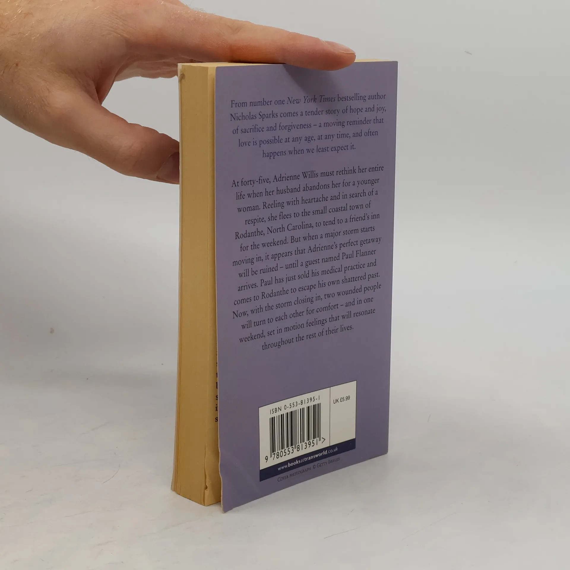 After her husband leaves her for a younger woman, forty-five-year-old Adrienne Willis reconsiders her entire life, until a trip to Rodanthe in North Carolina's outer banks leads to an encounter with successful surgeon Paul Flanner.