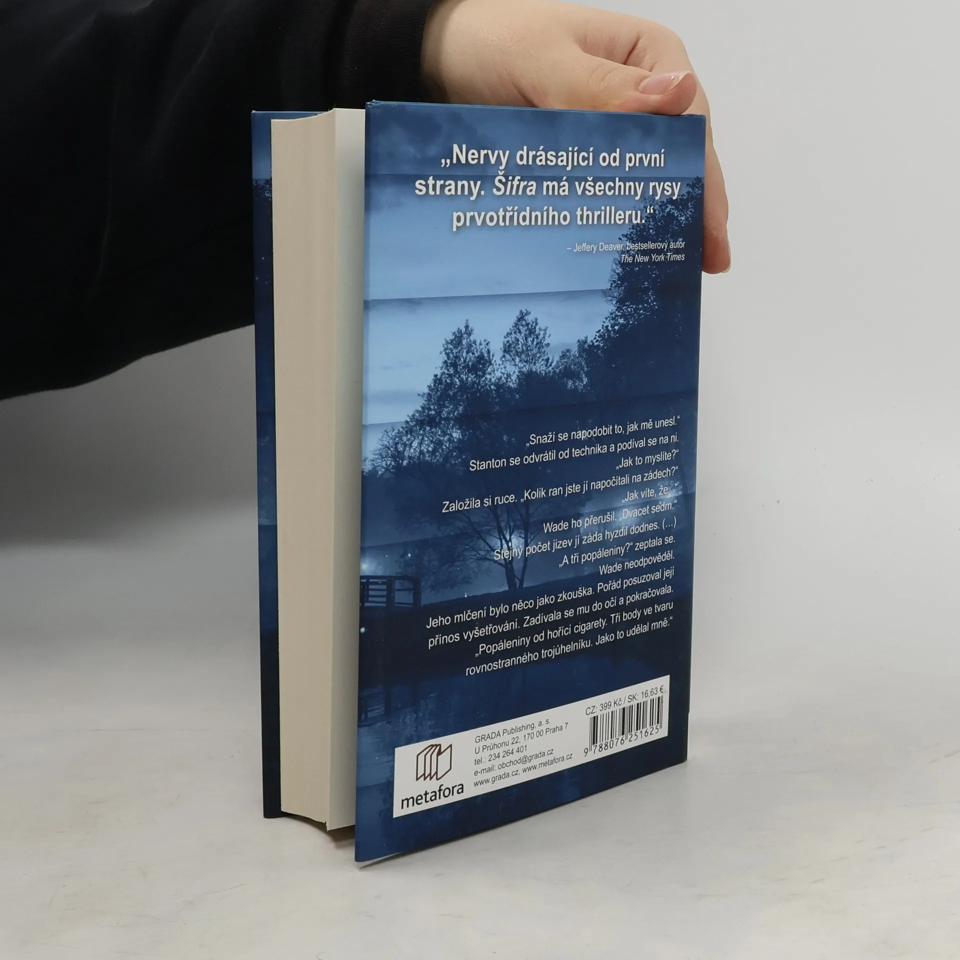 V šestnácti letech se Nině Guerrerové podařilo uniknout ze smrtící pasti sériového vraha. O jedenáct let později je z ní dospělá žena, zvláštní agentka FBI, která si nenechá nic líbit – a která si poté, co internetem proletí video, na němž se efektivně vypořádává s útočníky, kteří ji napadli ve virginském parku, získá i legie fanoušků. Jenže se dívá i někdo jiný. Někdo, kdo Nině nemůže zapomenout starou křivdu. Odhodlaný potrestat tu, která mu unikla, spáchá vrah z Nininy minulosti brutální zločin, jen aby ji zatáhl do vyšetřování. Tím ovšem jeho hra teprve začíná. A díky internetu se do ní tentokrát zapojí víc lidí než kdy dřív. Jeho hádanky a slovní hříčky z něj možná udělaly zvrhlou hvězdu sociálních sítí – tajemného virtuálního ducha přezdívaného Šifra –, ale pro Ninu je pořád tím, kým byl kdysi: zrůdou přiživující se na utrpení slabších. Aby ho dopadla, musí se spojit se spolupracovníkem FBI, psychoanalytikem Dr. Jeffrey Wadem. I jeho pronásledují stíny z minulosti, jenom společně však mají šanci – stopu za stopou, oběť za obětí – chladnokrevného vraha najít. Začíná závod s časem, který sleduje celý svět.