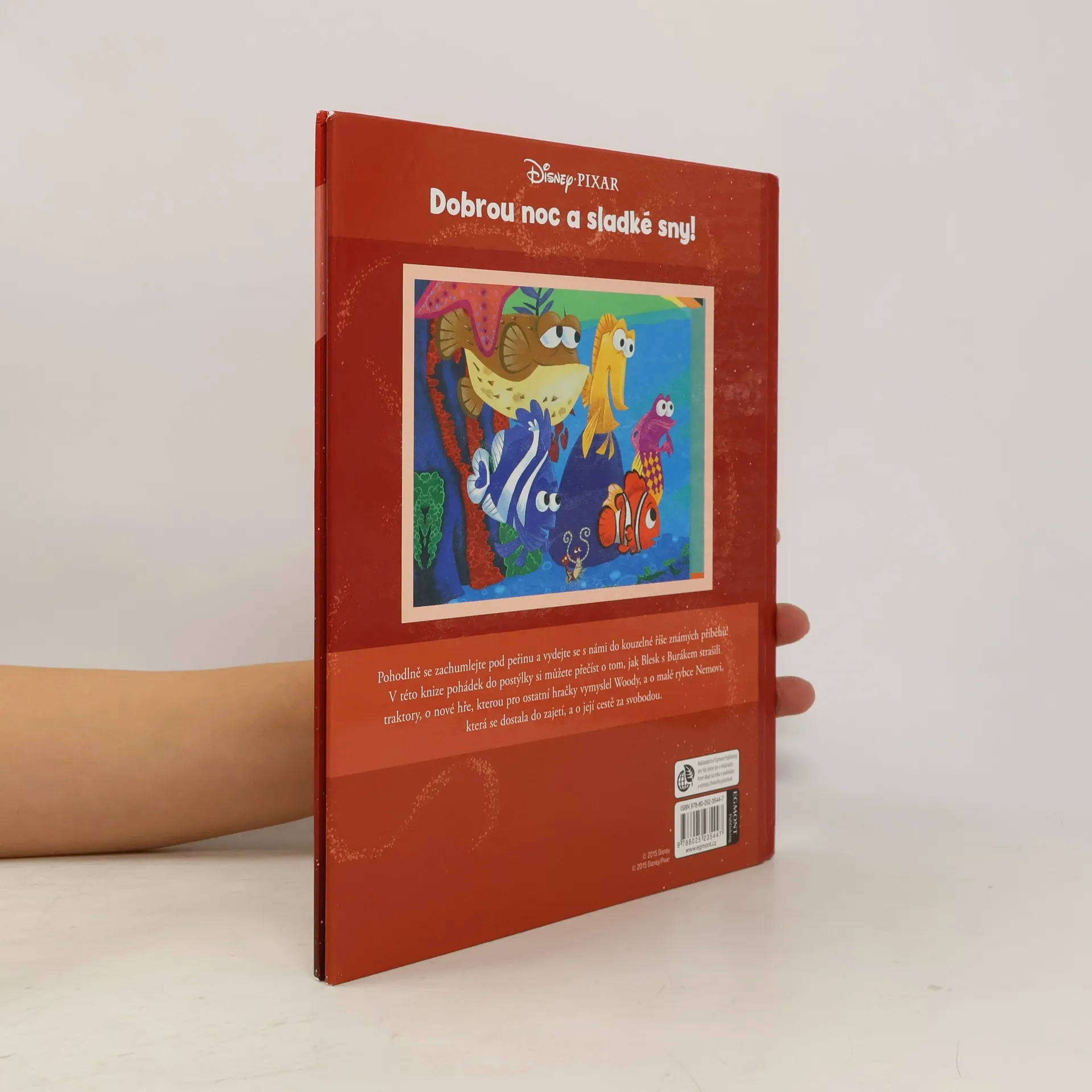 Tři pohádky s ilustraceni z dílny W. Disneye, které mohou děti znát i z animovaných filmů (Cars, Toy story, Finding Nemo). Pro předškolní děti. V úvodním příběhu se dočtete, jakou legrácku si vymyslela nerozlučná dvojice Blesk McQueen a Burák, druhá pohádka představí Woodyho z příběhu hraček a jeho novou hru a pohádkové čtení uzavírá známý příběh o ztracené leč statečné rybce Nemovi.