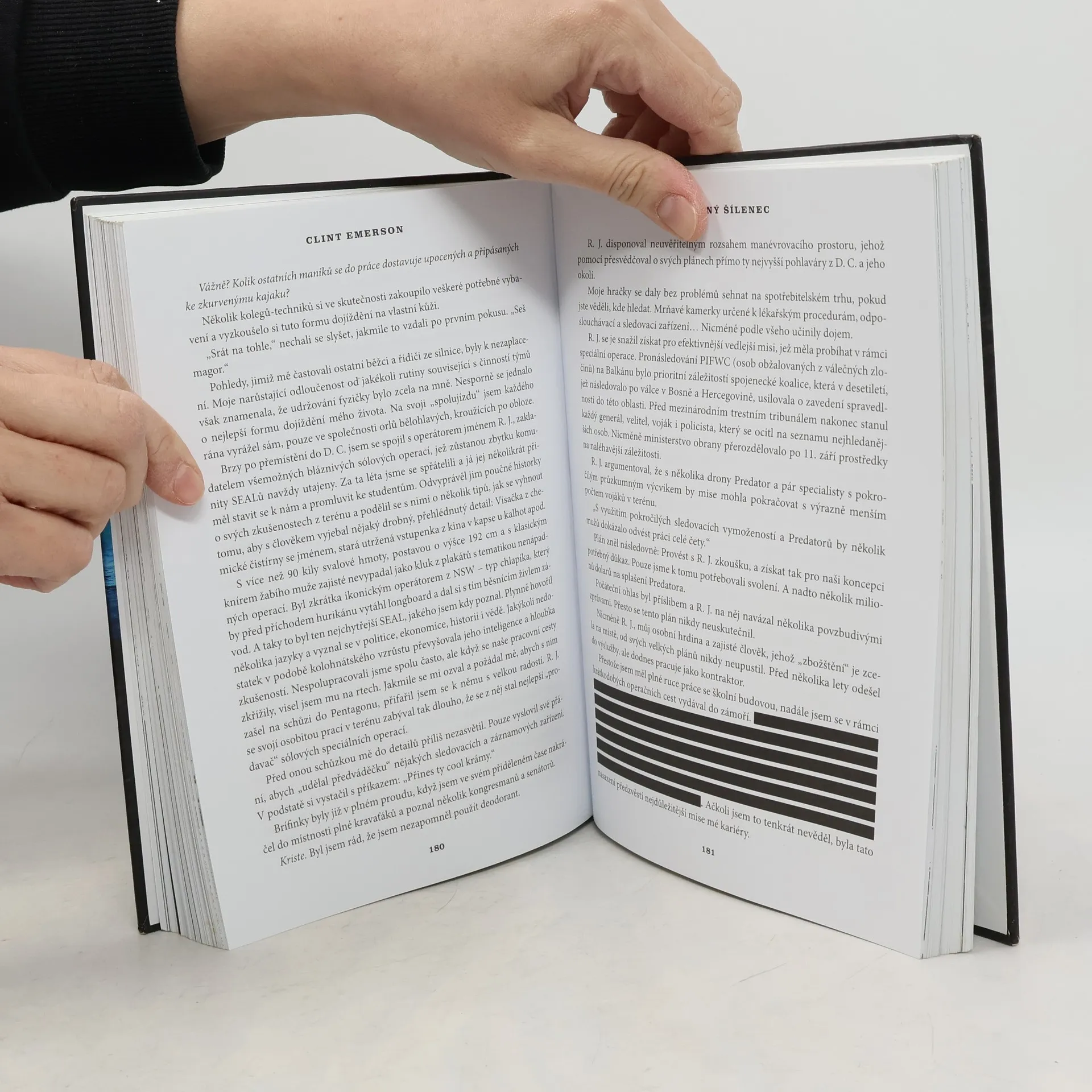 Vzpomínky bývalého člena Navy SEALs Clinta Emersona jsou plné černého humoru a nekompromisnosti. Po více než 20 letech služby, včetně nasazení na Blízkém východě a v Somálsku, se seznámil se systémem operací speciálních sil amerického námořnictva. Specializoval se na mise využívající lest, improvizaci a sofistikované technologie, přičemž jeho zásadou bylo: Najít, uvést do pořádku, dokončit beze stop a stát si za svým. Emersonovy vzpomínky na tajné mise, které ho zavedly do různých koutů světa, od Saúdské Arábie po Los Angeles, se odlišují od běžných autobiografií bývalých SEALů. Je jediným příslušníkem speciálních sil, jehož příběh je součástí International Spy Museum ve Washingtonu, což dokládá jeho kariéru na tenké hraně mezi bojovým nasazením a zpravodajskou službou. Kniha se vyznačuje upřímností a absencí politické korektnosti. Emerson se nebojí říct, že být skvělým vojákem neznamená být bezchybným člověkem, ale že tyto zkušenosti přinášejí skvělé příběhy. Jeho pohled na svět vojenských operací je jedinečný a neotřelý, což z jeho vzpomínek činí fascinující čtení.