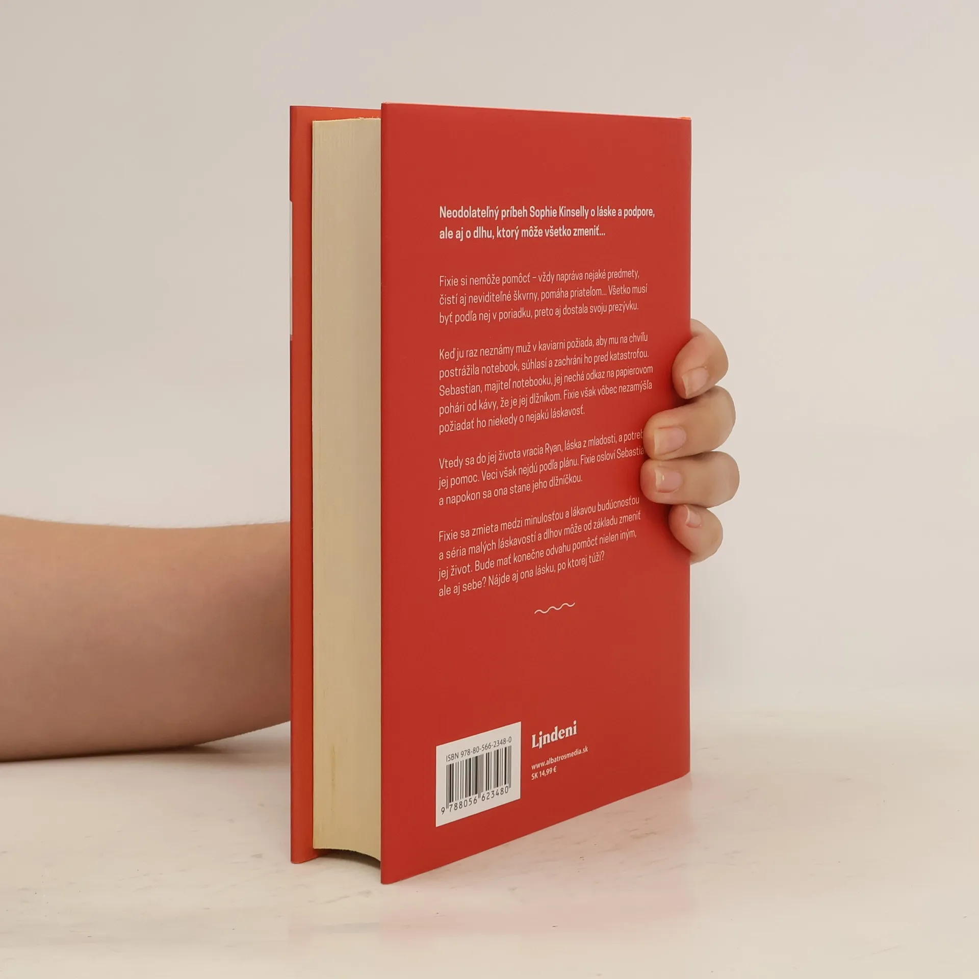 Neodolateľný príbeh Sophie Kinselly o láske a podpore, ale aj o dlhu, ktorý môže všetko zmeniť... Fixie si nemôže pomôcť – vždy napráva nejaké predmety, čistí aj neviditeľné škvrny, pomáha priateľom... Všetko musí byť podľa nej v poriadku, preto aj dostala svoju prezývku. Keď ju raz neznámy muž v kaviarni požiada, aby mu na chvíľu postrážila notebook, súhlasí a zachráni ho pred katastrofou. Sebastian, majiteľ notebooku, jej nechá odkaz na papierovom pohári od kávy, že je jej dlžníkom. Fixie však vôbec nezamýšľa požiadať ho niekedy o nejakú láskavosť. Vtedy sa do jej života vracia Ryan, láska z mladosti, a potrebuje jej pomoc. Veci však nejdú podľa plánu. Fixie osloví Sebastiana, a napokon sa ona stane jeho dlžníčkou. Fixie sa zmieta medzi minulosťou a lákavou budúcnosťou a séria malých láskavostí a dlhov môže od základu zmeniť jej život. Bude mať konečne odvahu pomôcť nielen iným, ale aj sebe? Nájde aj ona lásku, po ktorej túži?