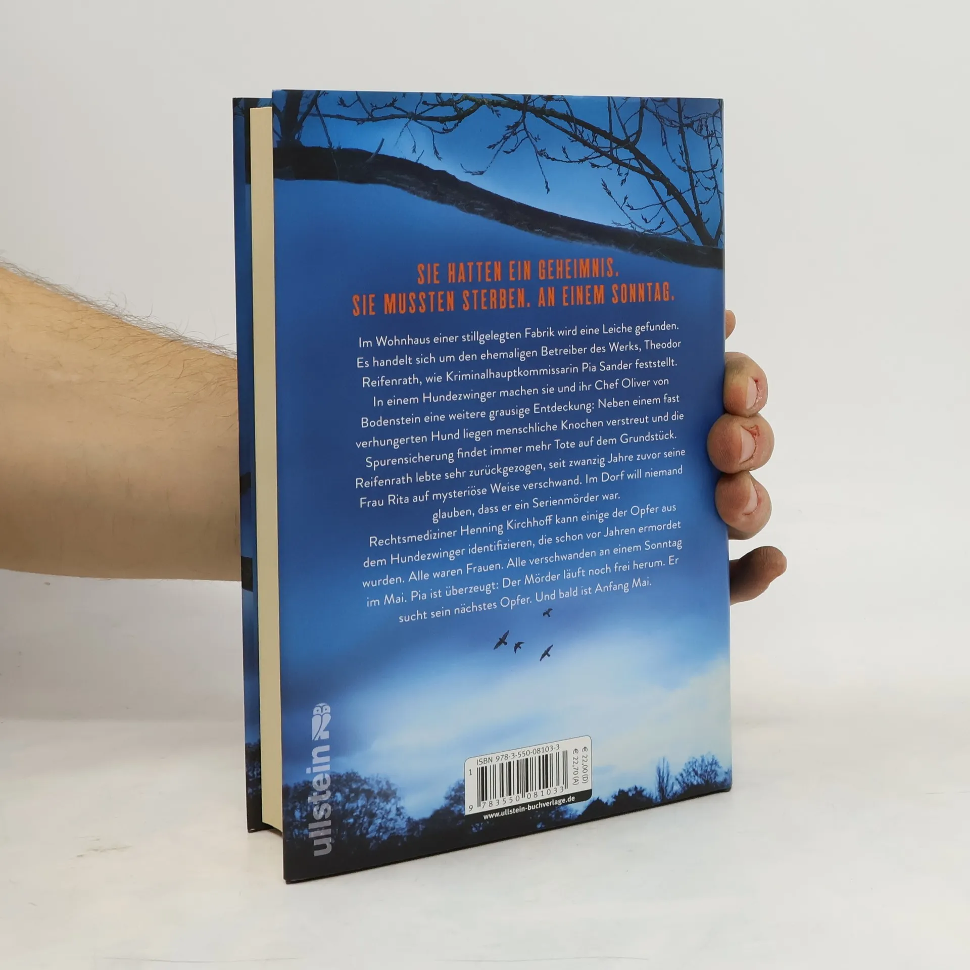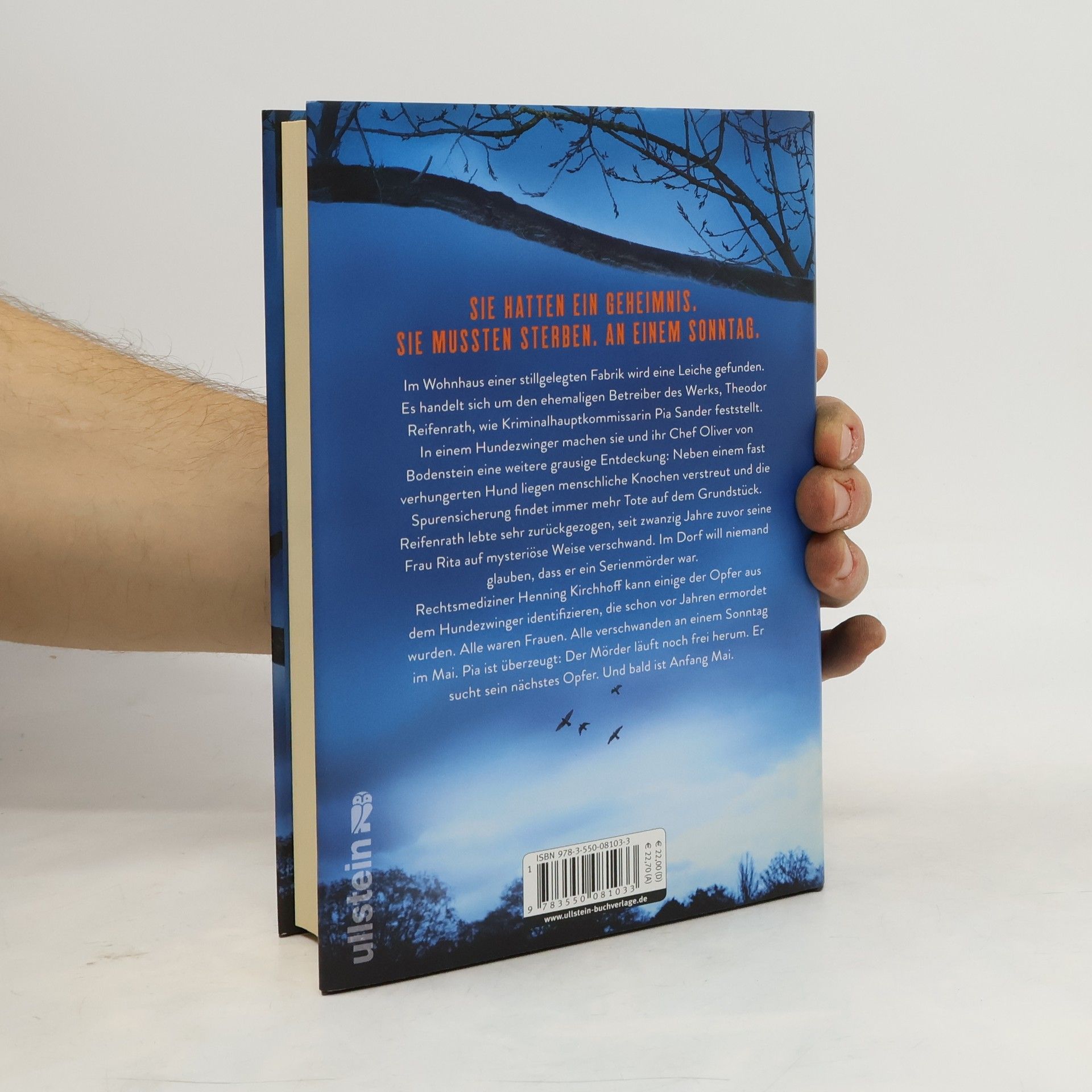 Sie hatten ein Geheimnis. Sie mussten sterben. An einem Sonntag. Der neue Bestseller von Nele Neuhaus Im Wohnhaus einer stillgelegten Fabrik wird eine Leiche gefunden. Es handelt sich um den ehemaligen Betreiber des Werks, Theodor Reifenrath, wie Kriminalhauptkommissarin Pia Sander feststellt. In einem Hundezwinger machen sie und ihr Chef Oliver von Bodenstein eine grausige Entdeckung: Neben einem fast verhungerten Hund liegen menschliche Knochen verstreut und die Spurensicherung fördert immer mehr schreckliche Details zutage. Reifenrath lebte sehr zurückgezogen, seit sich zwanzig Jahre zuvor seine Frau Rita das Leben nahm. Im Dorf will niemand glauben, dass er ein Serienmörder war. Rechtsmediziner Henning Kirchhoff kann einige der Opfer identifizieren, die schon vor Jahren ermordet wurden. Alle waren Frauen. Alle verschwanden an einem Sonntag im Mai. Pia ist überzeugt: Der Mörder läuft noch frei herum. Er sucht sein nächstes Opfer. Und bald ist Anfang Mai.