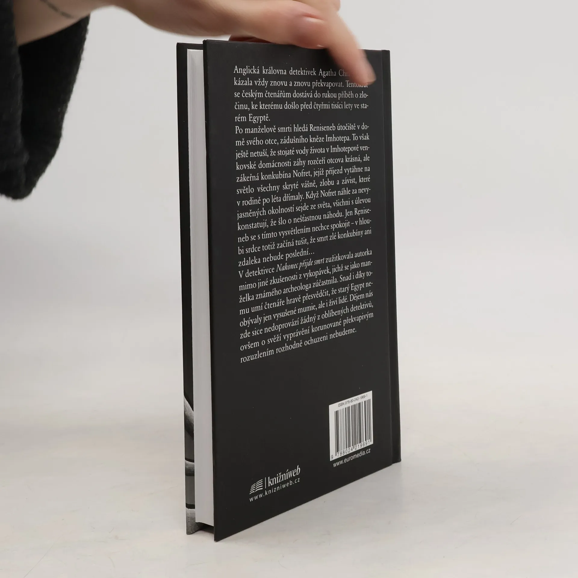 Anglická královna detektivek Agatha Christie dokázala vždy znovu a znovu překvapovat. Tentokrát se českým čtenářům dostává do rukou příběh o zločinu, ke kterému došlo před čtyřmi tisíci lety ve starém Egyptě. Po manželově smrti hledá Reniseneb útočiště v domě svého otce, zádušního kněze Imhotepa. To však ještě netuší, že stojaté vody života v Imhotepově venkovské domácnosti záhy rozčeří otcova krásná, ale zákeřná konkubína Nofret, jejíž příjezd vytáhne na světlo všechny skryté vášně, zlobu a závist, které v rodině po léta dřímaly. Když Nofret náhle za nevyjasněných okolností sejde ze světa, všichni s úlevou konstatují, že šlo o nešťastnou náhodu. Jen Reniseneb se s tímto vysvětlením nechce spokojit – v hloubi srdce totiž začíná tušit, že smrt zlé konkubíny ani zdaleka nebude poslední… V detektivce Nakonec přijde smrt zužitkovala autorka mimo jiné zkušenosti z vykopávek, jichž se jako manželka známého archeologa zúčastnila. Snad i díky tomu umí čtenáře hravě přesvědčit, že starý Egypt neobývaly jen vysušené mumie, ale i živí lidé. Dějem nás zde sice nedoprovází žádný z oblíbených detektivů, ovšem o svěží vyprávění korunované překvapivým rozuzlením rozhodně ochuzeni nebudeme.