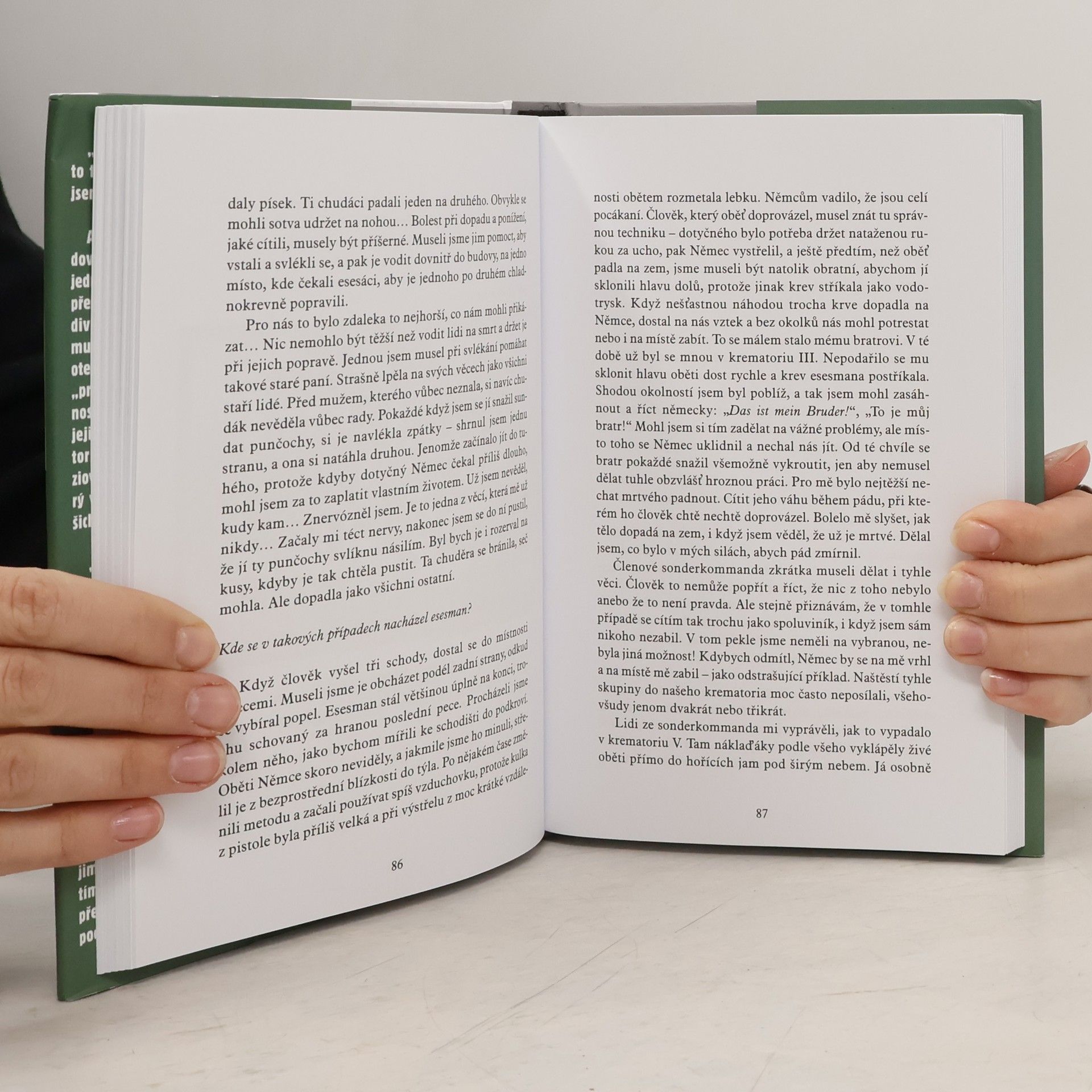 Podtitul: Svědectví přeživšího člena osvětimského sonderkommanda „Až doted’ jsem to nikomu nevyprávěl. Je to tak tíživé a děsivé, že mluvit o tom, co jsem viděl, mi stále dělá potíže…“ Autentické svědectví někdejšího člena židovského sonderkommanda v Osvětimi – jednoho z mála těch, kteří osvětimské peklo přežili, a jediného, kdo podal ucelenou pravdivou výpověď o smrticí mašinérii, které musel sloužit. Shlomo Venezia se odvážil otevřeně popsat i ty nejděsivější stránky své „práce“ a vynesl na světlo šokující podrobnosti, jež odhalují spáchaný zločin v celé jeho obludnosti. Jak konstatuje spoluautorka knihy Béatrice Prasquierová, Veneziovo svědectví je historický dokument, který vrhá světlo na nejtemnější stránku našich dějin.