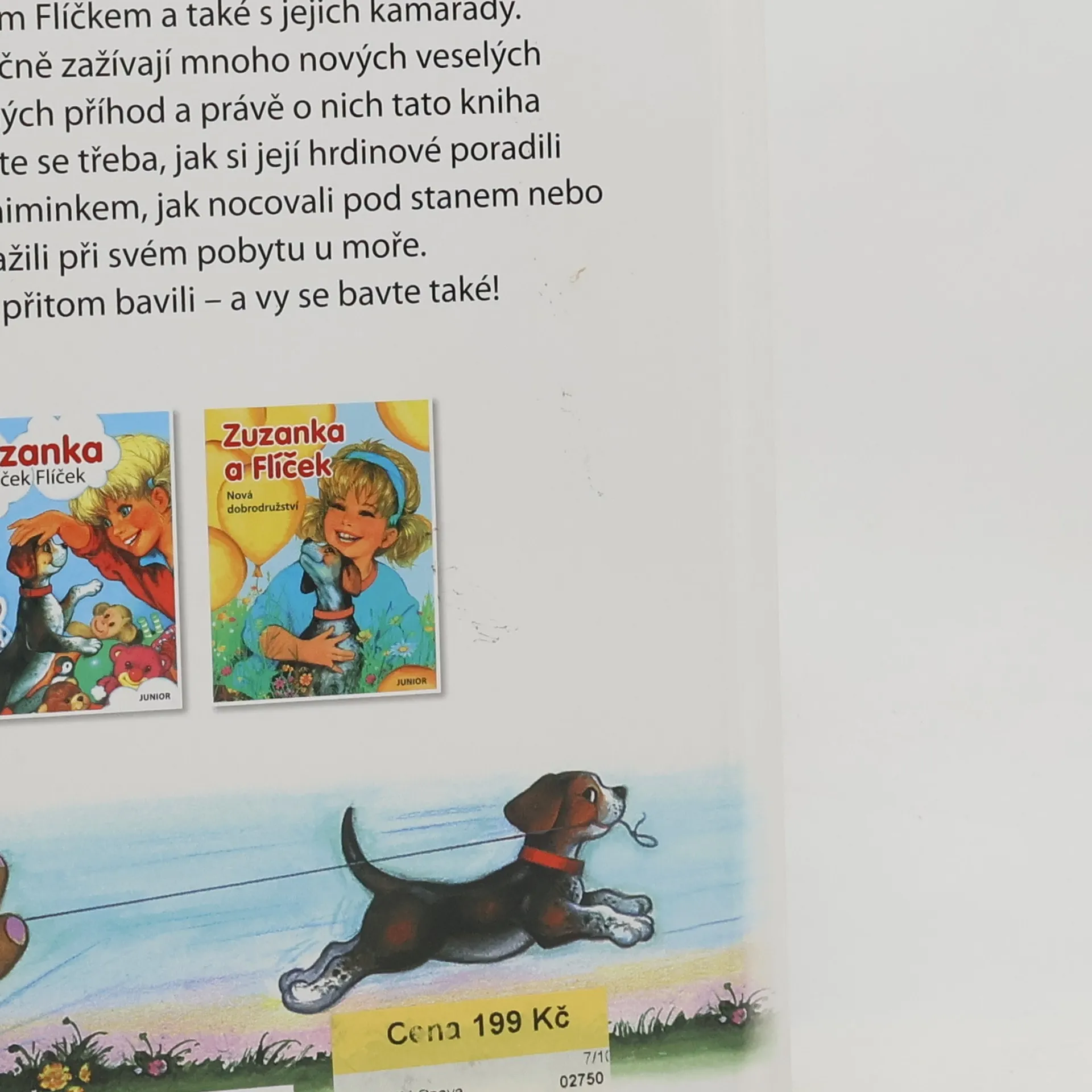 Již potřetí se setkáváte s holčičkou Zuzankou, jejím psíčkem Flíčkem a také s jejich kamarády. Všichni společně zažívají mnoho nových veselých i dobrodružných příhod a právě o nich tato kniha vypráví. Dozvíte se třeba, jak si její hrdinové poradili s neposedným miminkem, jak nocovali pod stanem nebo co zažili při svém pobytu u moře. Dobře se při tom bavili - a vy se bavte také!